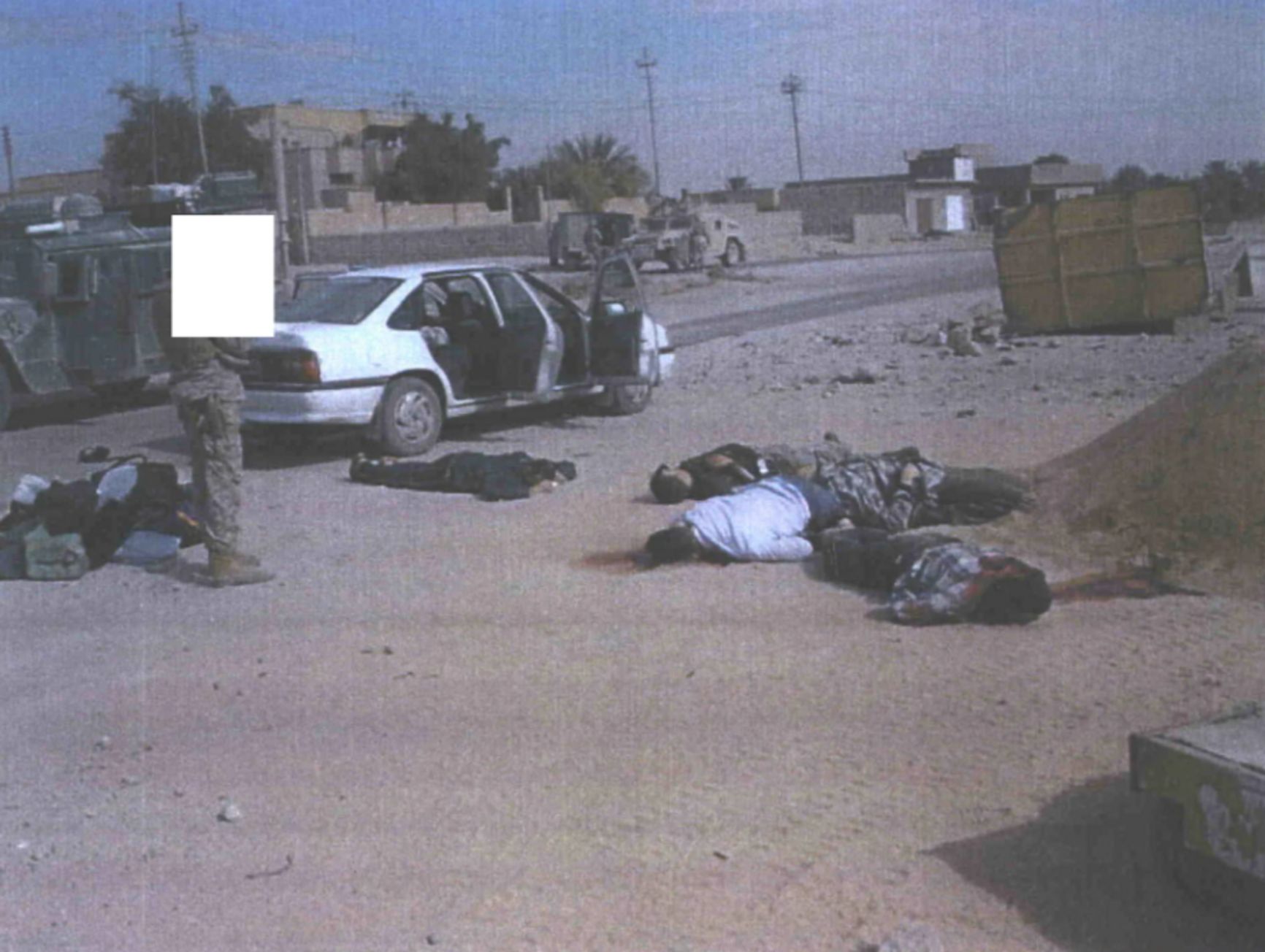 Некоторые из морских пехотинцев утверждали, что мужчины убегали, когда их застрелили, однако фотография противоречит этому: видно, что мужчин застрелили рядом с машиной. Одного из мужчин нашли лежащим на спине с поджатыми под себя ногами, что позволяет предположить, что он мог стоять на коленях, когда в него стреляли. Морские пехотинцы обыскали тела и машину и не нашли оружия. Военные закрыли лицо военнослужащего белым квадратом на фото.