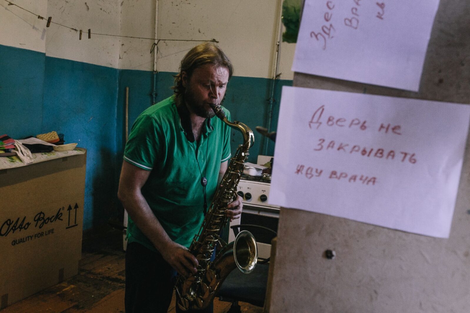 Андрей Шабанов играет на саксофоне у себя дома на кухне, Самара, 2015 год. Фото: Анар Мовсумов.