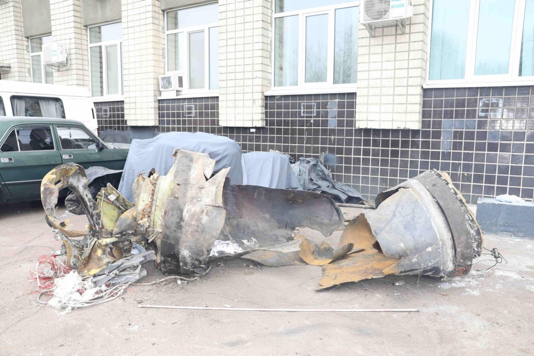 Собранные обломки баллистической ракеты, использованной для ударов по целям в Харькове и заявляемой как северокорейская KN-23