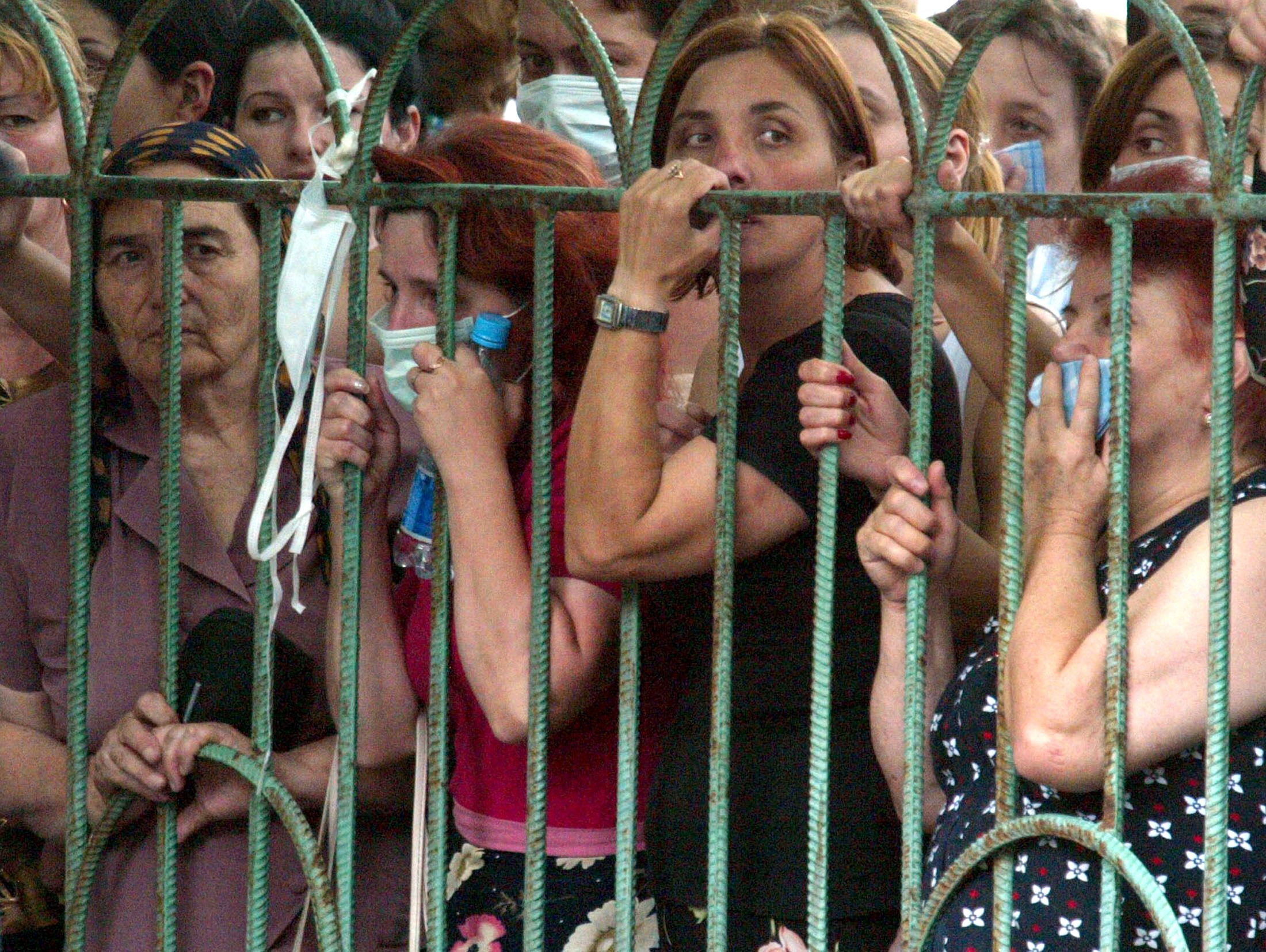 Жители Беслана в оцеплении в момент штурма школы № 1