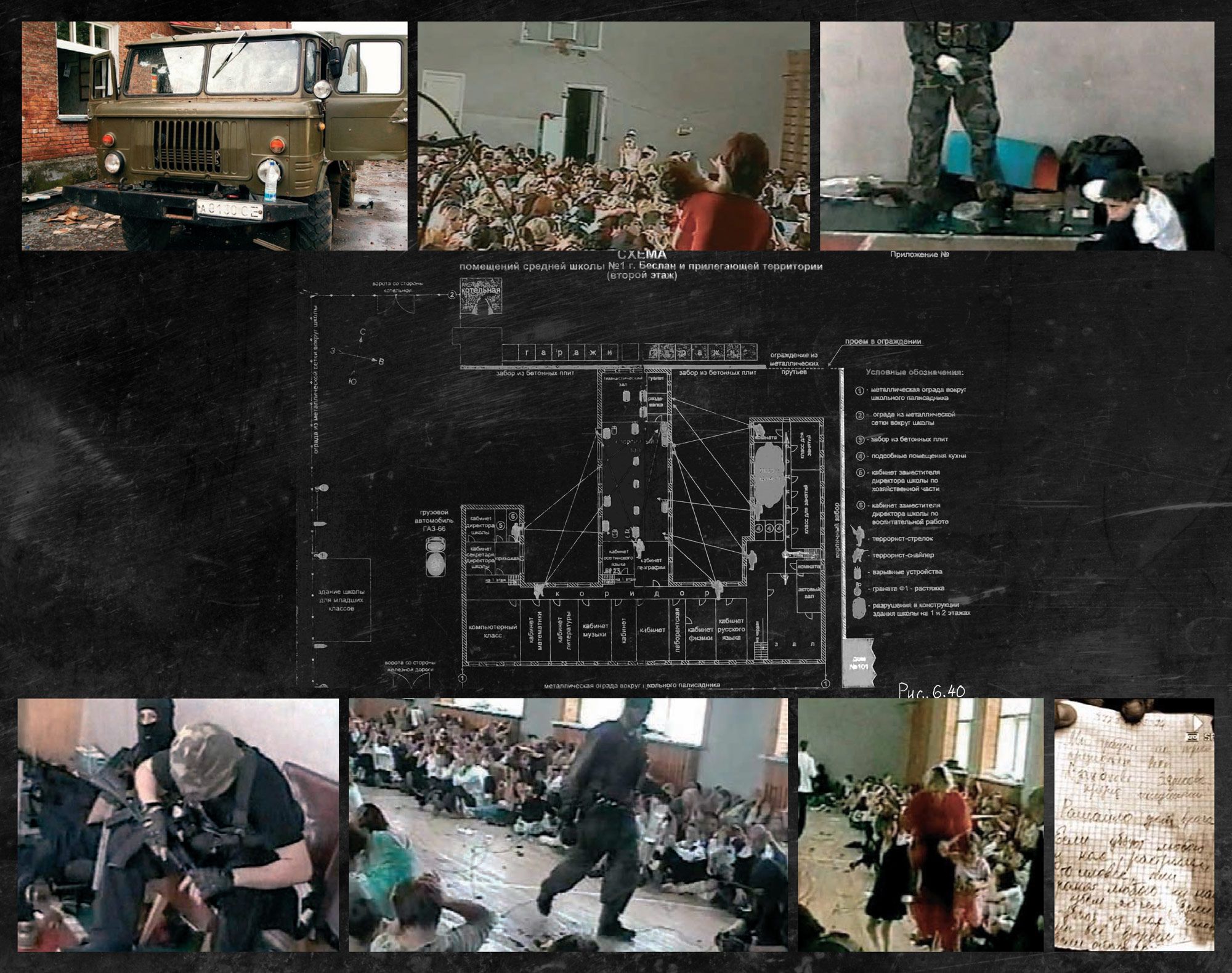 Террористы ворвались во двор школы № 1 почти сразу после начала линейки. В течение нескольких минут они согнали более тысячи человек в школьный спортзал, отобрали у заложников личные вещи и начали баррикадировать здание и устанавливать самодельные взрывные устройства. Боевики заранее изучили план школы. Они знали его досконально.