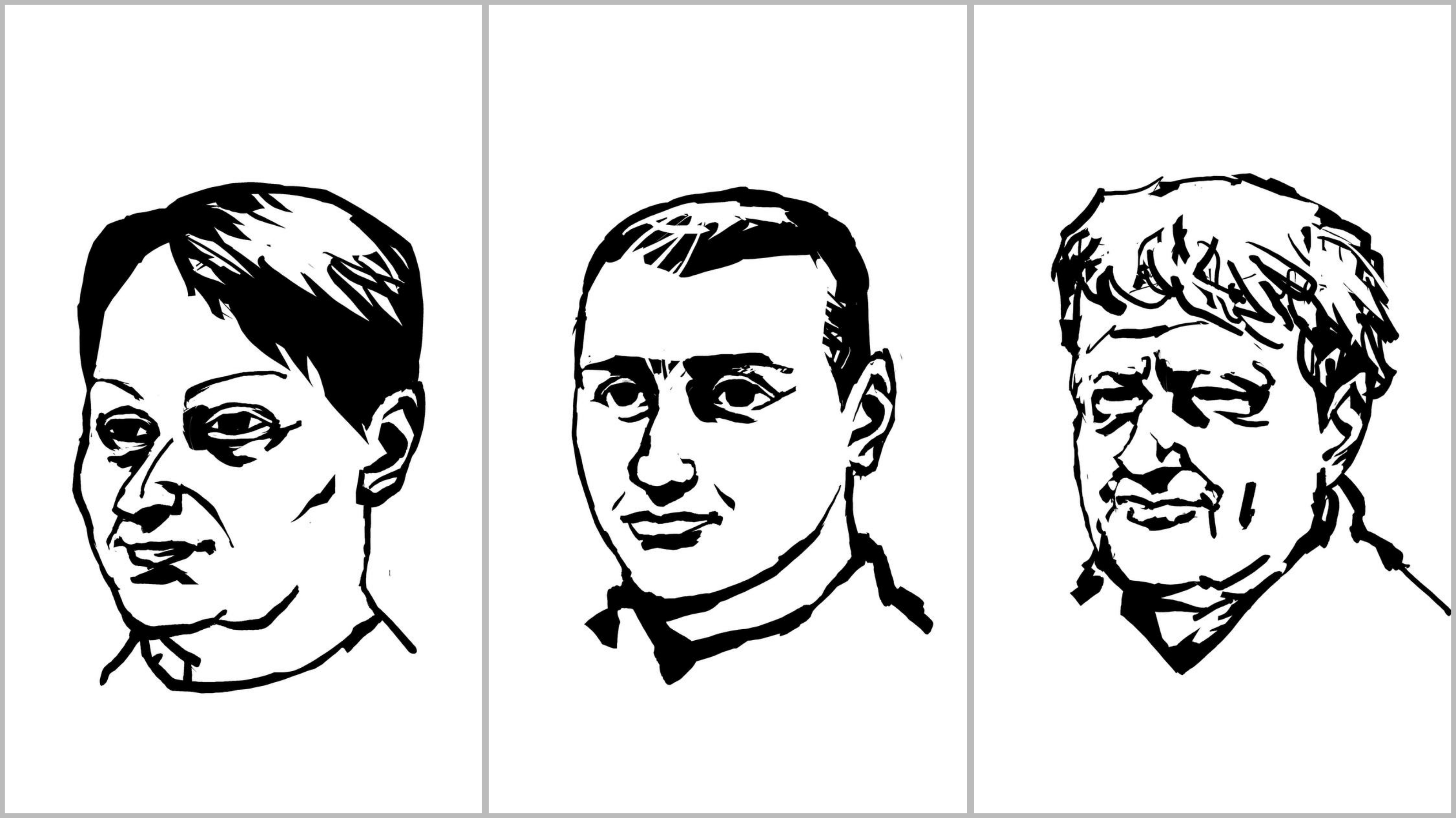 Портреты погибших украинцев, выполненные Виктором Меламедом, и описания, которые он даёт в соцсетях. Слева направо: