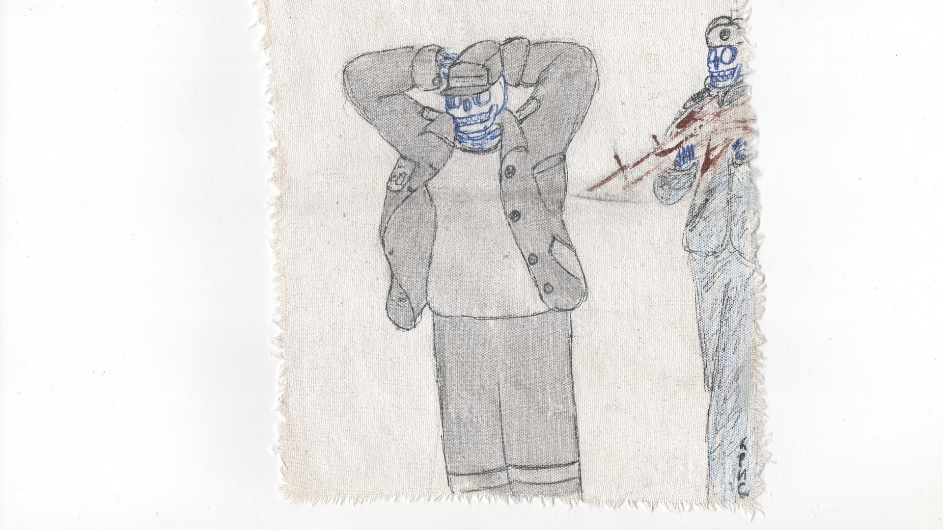 Как автор я говорю вам спасибо, что решили на это все посмотреть и познакомиться с внутренней психологией русской тюрьмы через мои работы. Надеюсь, вам понравится, ведь то, что до вас дошло — это малая часть из того, что удалось запечатлеть на холстах. Холсты, кстати, такая же часть тюрьмы. Это простыни, грунтованные зубной пастой, Репрессию я рисую кровью, а все остальное — это тушь и карандаши".