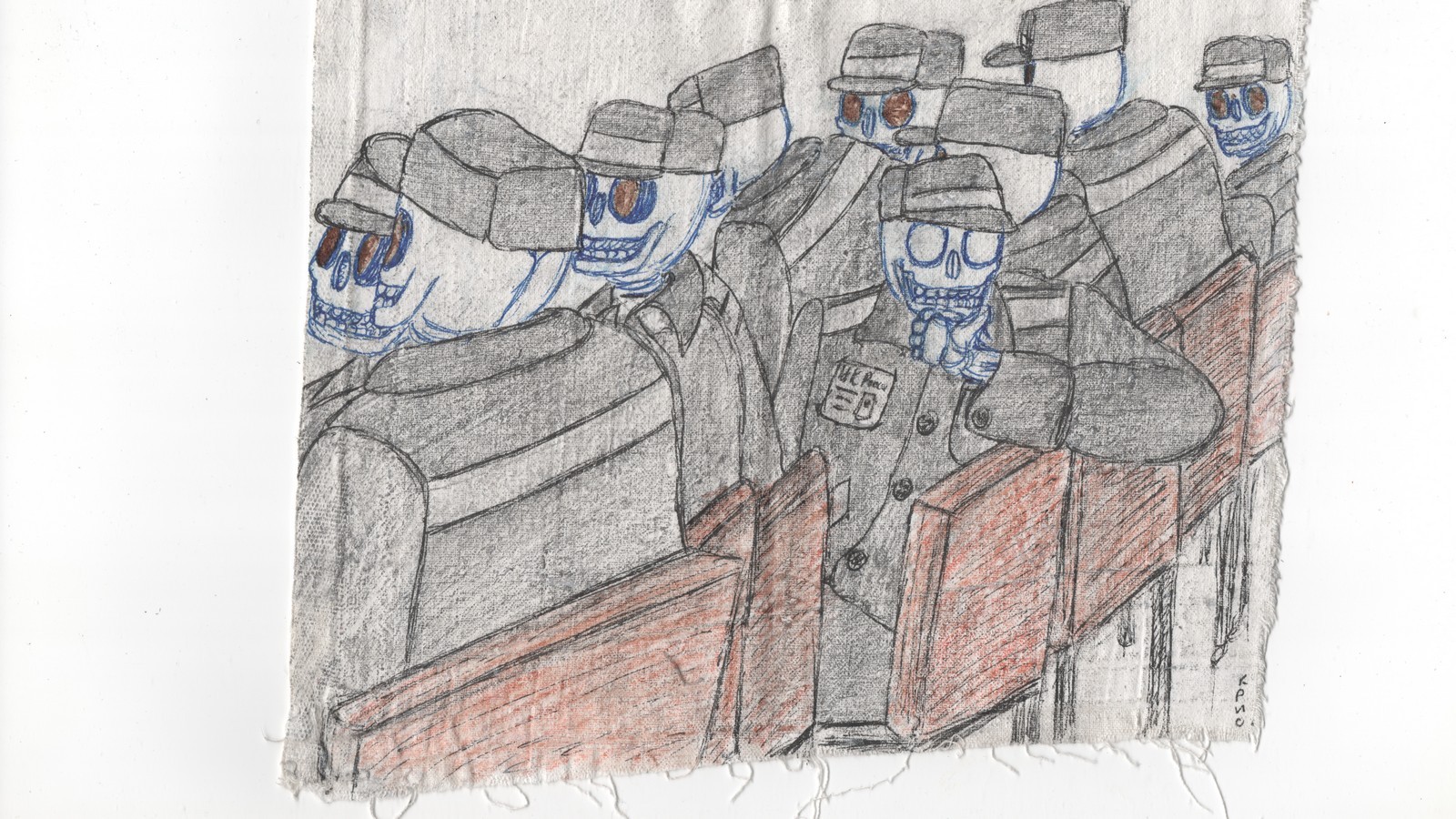 На работах Павла – скелеты в тюремных робах и в форме фсиновцев. По мысли художника, в российской тюрьме ни для кого нет жизни. Там одни ходячие мертвецы охраняют других.