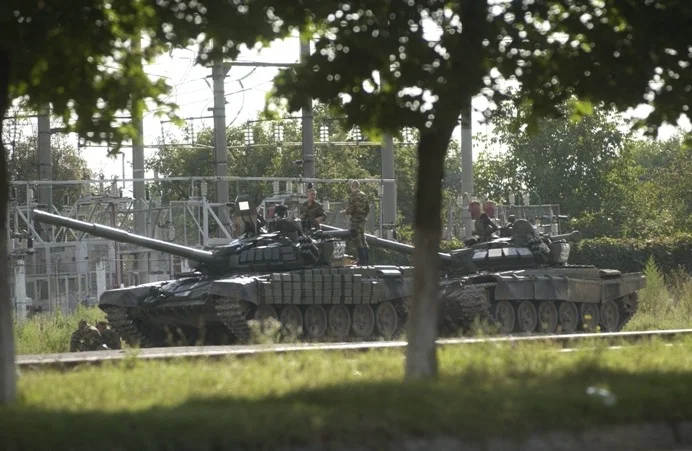 В 18 часов 2 сентября, ровно через час после того, как бывший президент Ингушетии генерал Руслан Аушев вывел из захваченной террористами школы 26 заложников и смог убедить боевиков продолжать переговоры и разрешить увезти тела погибших заложников, в Беслан вошли танки и демонстративно встали вблизи трансформаторной подстанции рядом с переездом через железнодорожное полотно, в трехстах метрах от захваченной террористами школы.