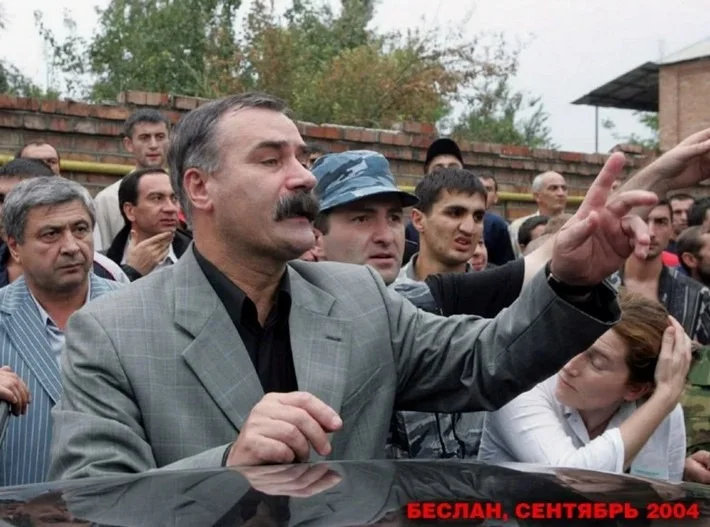 Комментируя запечатленные на камеру переговоры с террористами Руслана Аушева (единственного, кто сумел войти в захваченную школу и вывести оттуда матерей с грудными детьми), Симоньян с глумливой интонацией сообщает: «Бывшего президента Ингушетии пустили в школу со всей положенной на Кавказе уважухой. На Кавказе давно говорили о том, что бывшая ингушская власть была на короткой ноге с боевиками. На этих кадрах Аушев деловито осматривает место казни отцов семейств, расстрелянных в первые же часы. А вот на мягких креслах террористы мило беседуют с Аушевым».