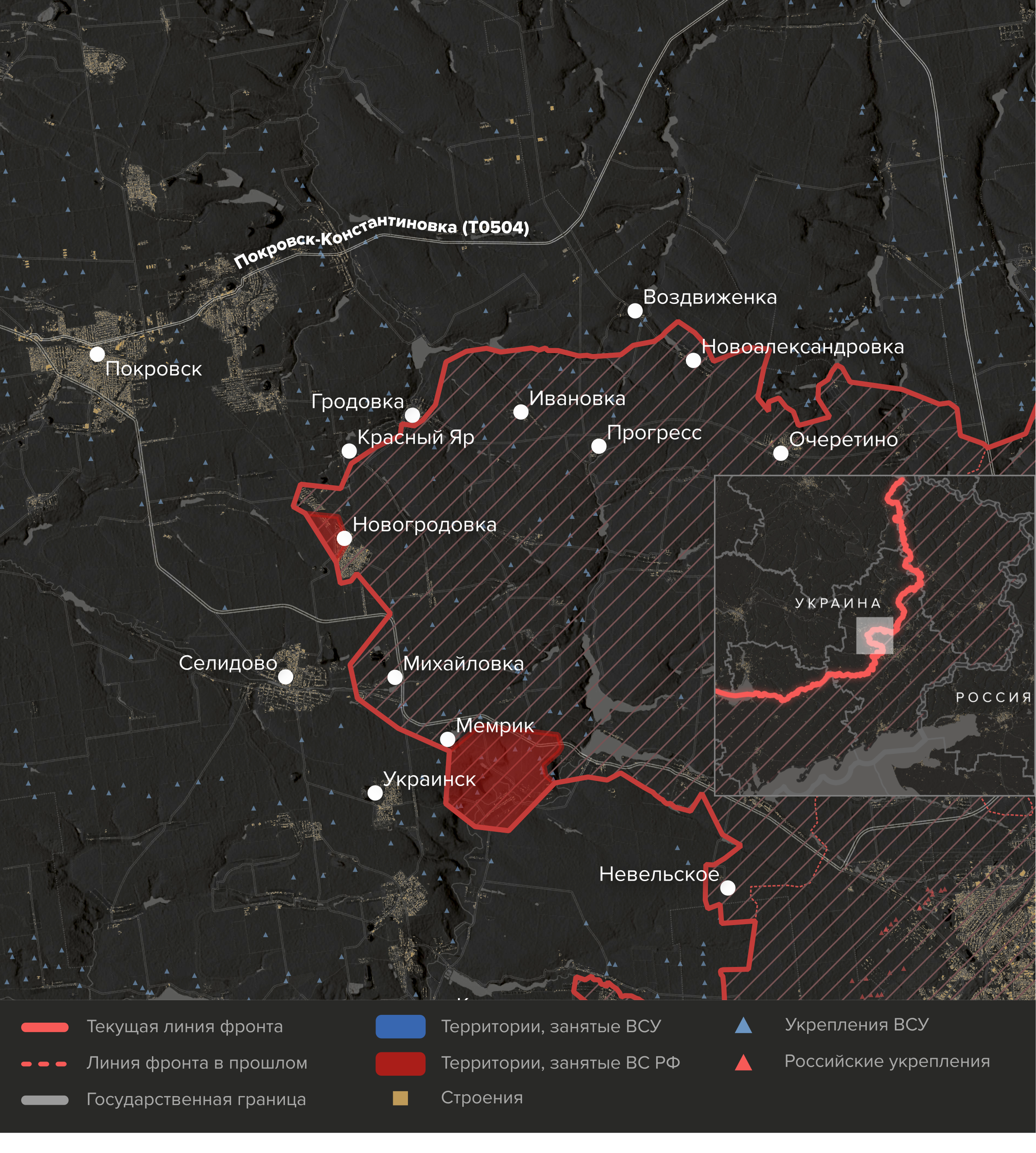 - Окрестности села обороняют силы 59-й механизированной бригады, которые отразили десятки штурмов российских войск. Кроме прочего, они контролируют огнем трассу Донецк — Покровск, на которой регулярно подбивают машины снабжения и бронетехнику ВС РФ. Контроль над дорогой даст российскому командованию возможность более эффективно снабжать силы под Покровском и Селидово.