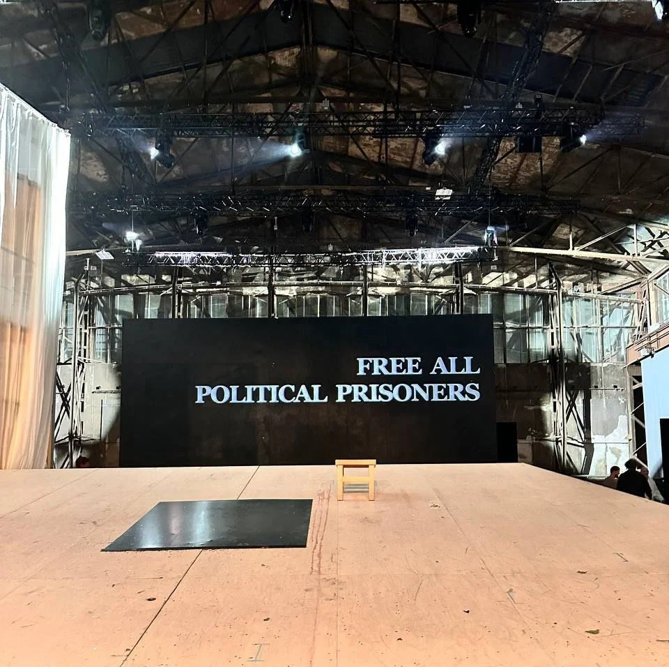Отдельно в этой связи смотрится финальный кадр, который режиссер добавляет к каждому спектаклю вместо занавеса. В «Легенде» это — черно-белая Free all political prisoners.