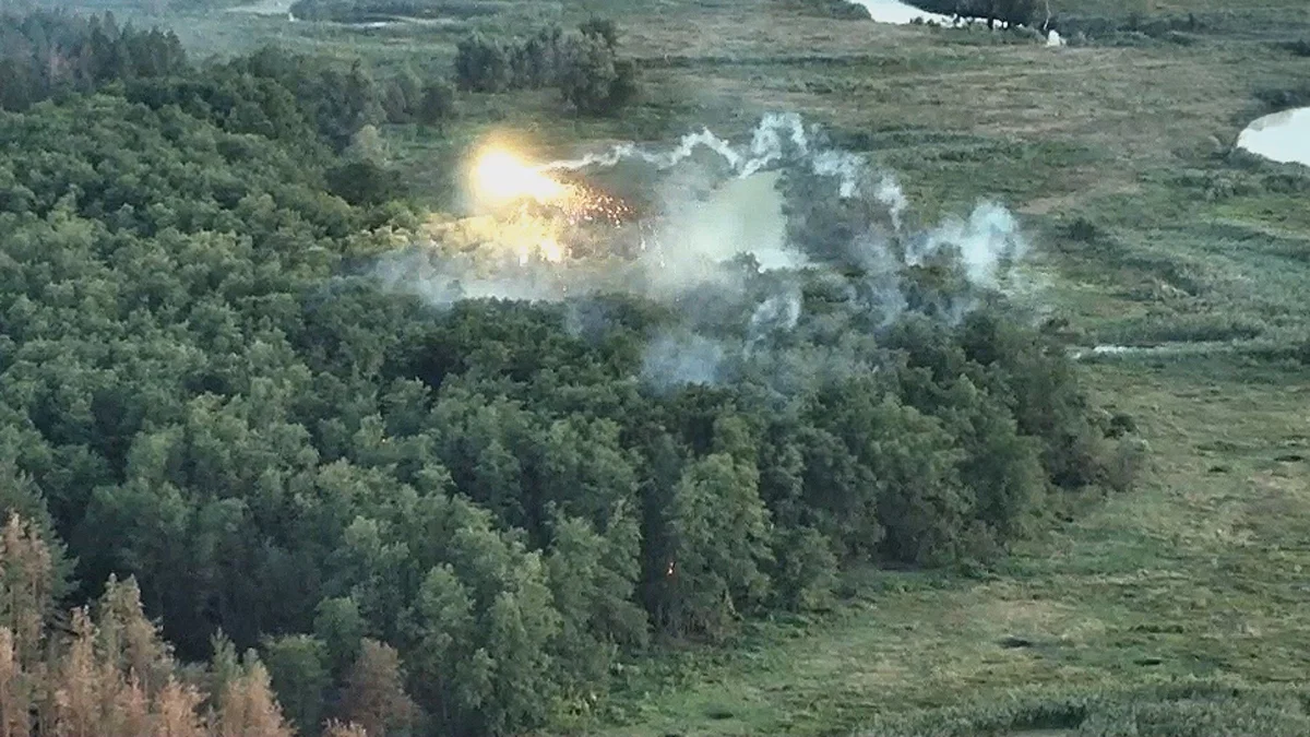 Телеканал CNN сообщает о серии видеороликов, опубликованных в Telegram Министерством обороны Украины. На них видно, как низколетящие беспилотники сбрасывают потоки огня — на самом деле расплавленного металла — на расположенные в лесополосе позиции российских военных.