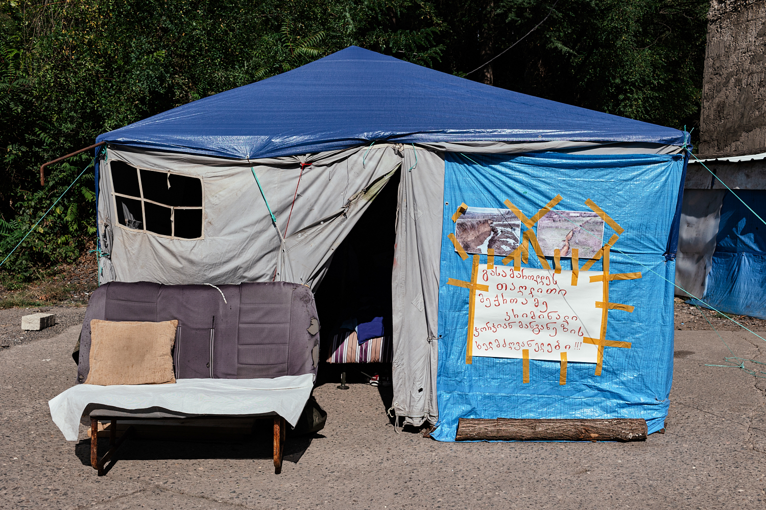 «Мы с первого дня, когда эти процессы начались в 2019 году, начали протестовать, — рассказывает участник протестов Гиорги Непаридзе. — Это уже пятый наш выход и пятый раз, когда нам приходится жить в палатках с нашими семьями. Мы с первого дня хотим, чтобы весь этот процесс был прозрачным, но компания в первую очередь требует от нас, чтобы всё это происходило за закрытыми дверями в глухих кабинетах. Компания обязана была в начале работ начать коммуникацию с жителями деревни и объяснить им риски от открытия рудников [по словам протестующих, в 2017 году были открыты 13 замороженных в советское время шахт — прим. Paper Kartuli]».