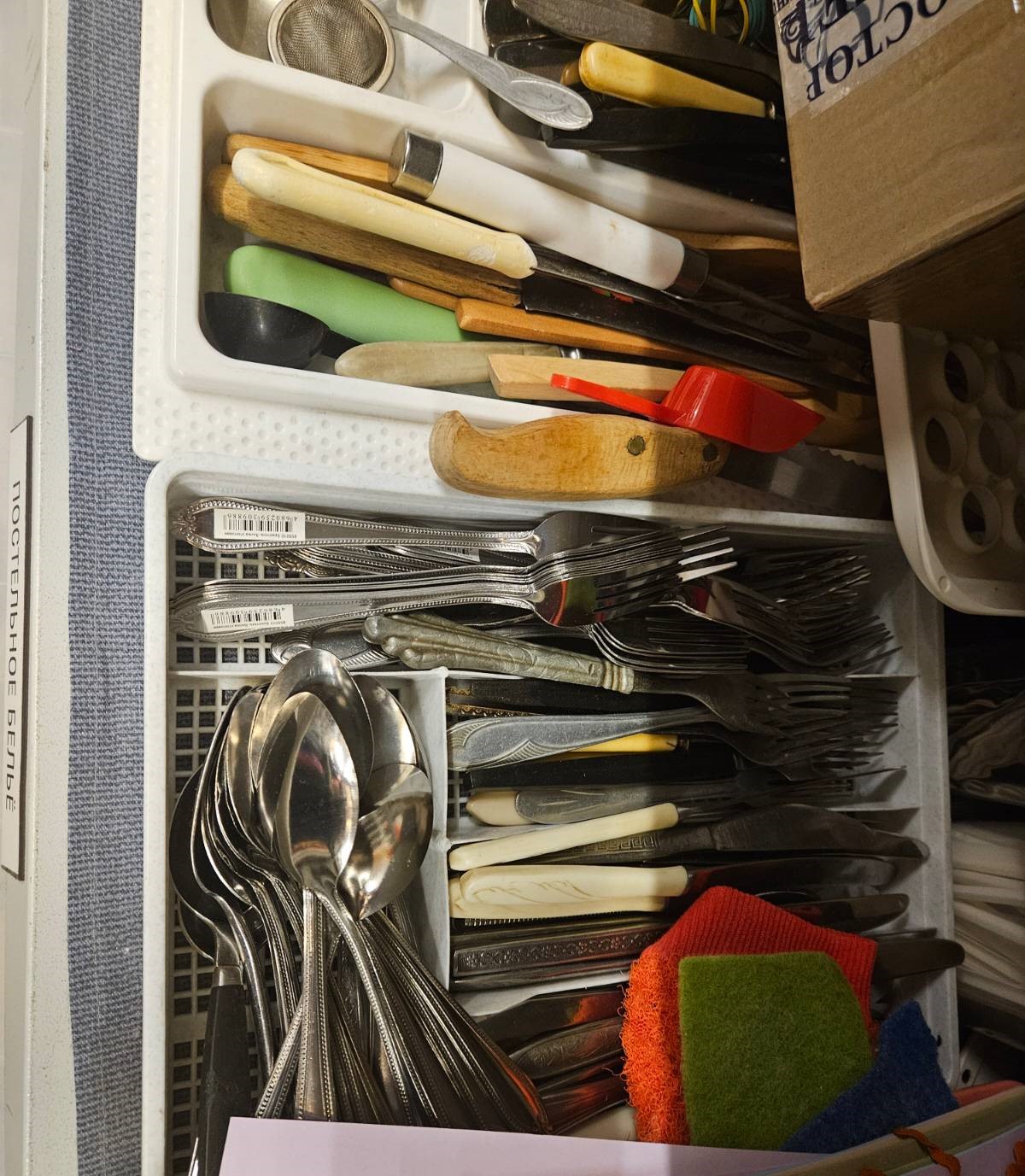 Гумсклад проводит анкетирование тех людей, которым помогает постоянно, поэтому волонтеры точно знают потребности той или иной семьи. Например, сейчас складу нужно 133 сковородки и 105 кастрюль – есть конкретный список семей, которые в них нуждаются. Новые выдаются по списку, б/у можно взять на полках, но далеко не всегда бэушные есть. По списку, как правило, выдаются новые вещи, специально купленные. Или в очень хорошем состоянии микроволновки, утюги, мультиварки, миксеры, фены – все они проверены и готовы к работе. Казалось бы, а фен-то зачем, не предмет первой необходимости. Или миксер. Да и без микроволновки можно обойтись.