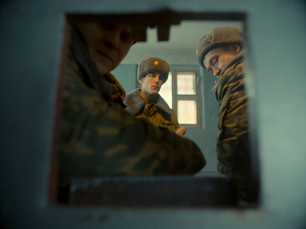 Как это бывает у Глигорова и его оператора Батыра Моргачева (на мой взгляд, одного из лучших сегодня), изображение решено не просто концептуально, смыслово, но придает истории дополнительное фантастическое измерение. Во-первых, решетка — главный художественный образ. Через клетку смотрим не только на преступников, но и на надзирателей, Довлатов писал о внутренней родственности охранников и заключенных. Пространства с измененной геометрией, то чрезмерно вытянутые, то с отлетевшими вверх потолками. Глубинные кадры. Мрачные интерьеры. А вокруг изумительные просторы Камчатского края во всем скупом северном великолепии под ледяным солнцем: смертельно красивый и холодный край света. И за кадром поют скрипки и виолончели под торжественную поступь генделевского шага.