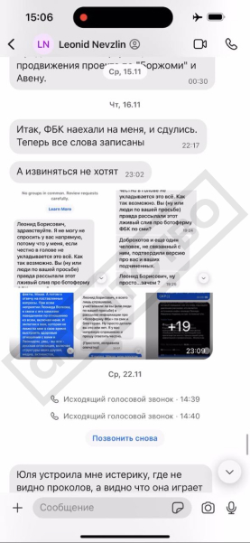 - Кроме переписок, Матус во время личной встречи с Леонидом Волковым и Иваном Ждановым в Черногории также предоставил запись разговора предположительно с Невзлиным. Позднее Матус перестал выходить на связь, а на прошлой неделе переписку опубликовал RT.