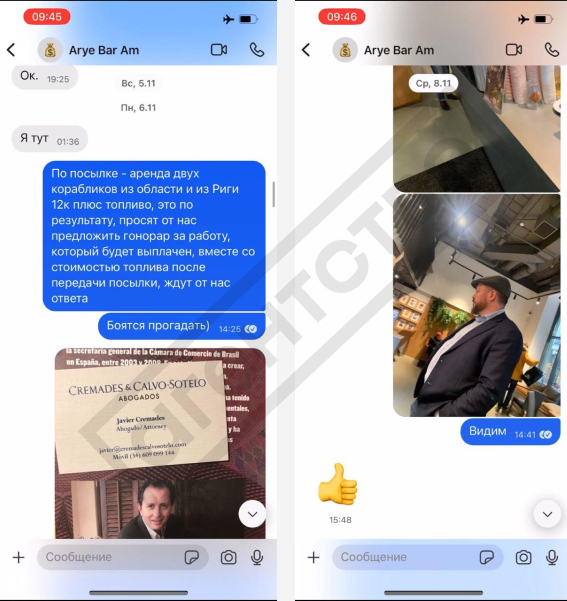 2️⃣ В переписке много второстепенных деталей, позволяющих установить собеседников. В частности, общение затрагивает обстоятельства жизни множества людей, которые связаны с Невзлиным. Например, обсуждается проблема с визой и ВНЖ Испании у жены экс-сотрудника администрации Башкирии Ростислава Мурзагулова, которого Ходорковский нанял на работу шеф-редактором YouTube-канала «Открытые медиа» (недавно переименовали в NEVZLIN Media). Также Невзлин пересылает собеседнику сообщение от, как мы понимаем из контекста, Марии Соленовой (возглавляет проект Action4life ), которая называет бывшего акционера ЮКОСа «боссом» и просит помочь решить вопрос с водительскими правами в Латвии, а позже – с оформлением ВНЖ в Испании для отца. Также собеседники обсуждают действия против людей и организаций, у которых есть те или иные конфликты с Невзлиным (к примеру, Петра Авена или компанию IDS Borjomi Europe).