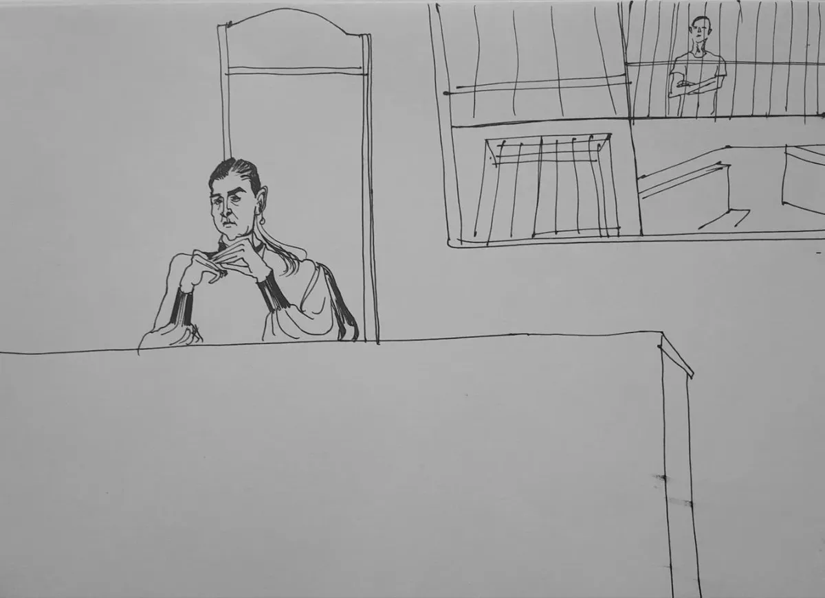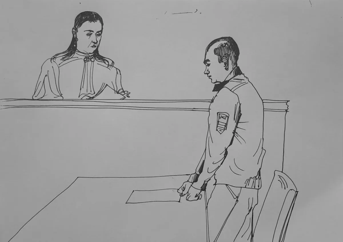 Ибрагим Оруджев в суде. Иллюстрация: Екатерина Галактионова / «Новая газета»