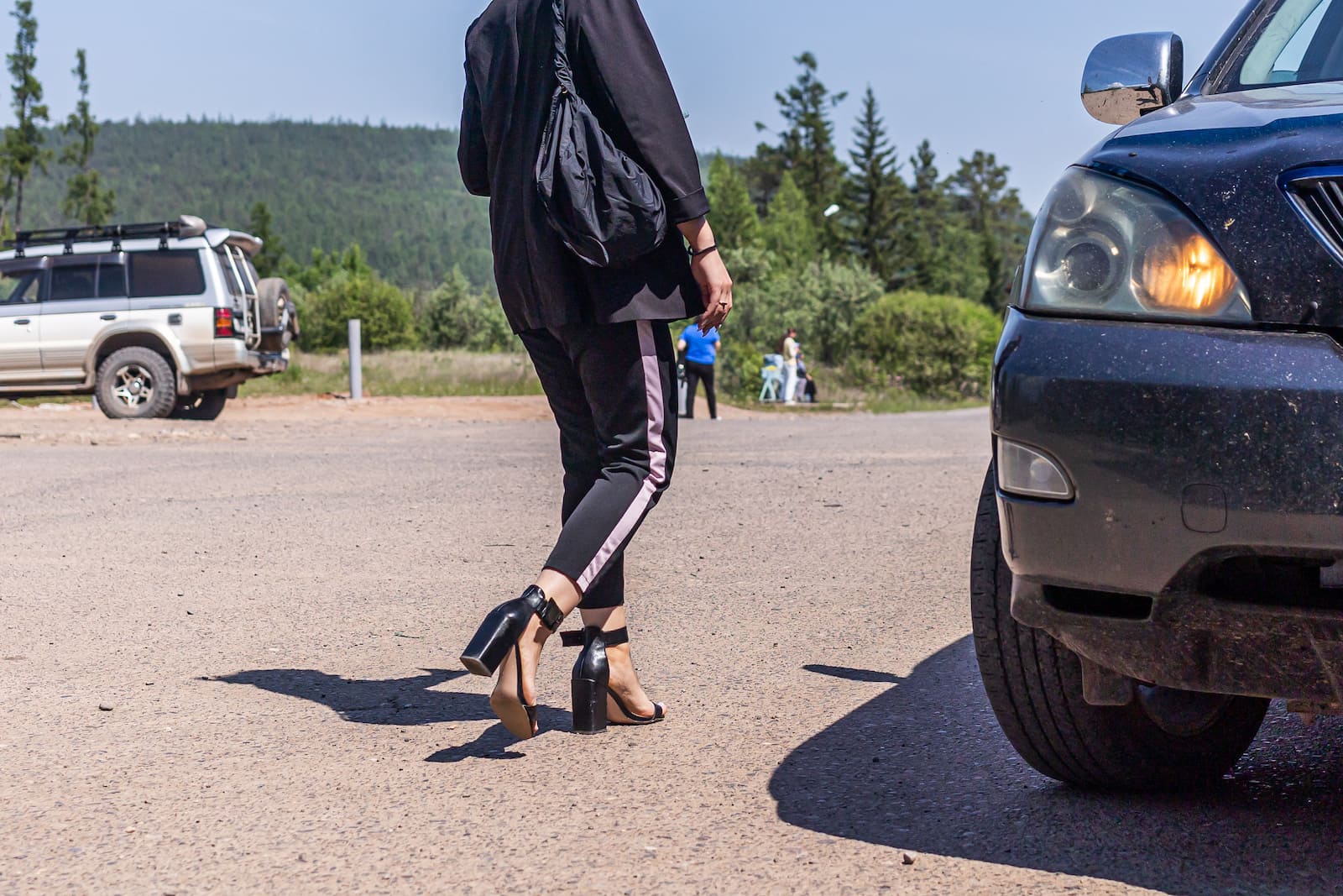 Евгений надел ветровку прямо на пижаму, Людмила села за руль. На улице был сильный туман. Людмила включила аварийку, и они поехали в аэропорт.