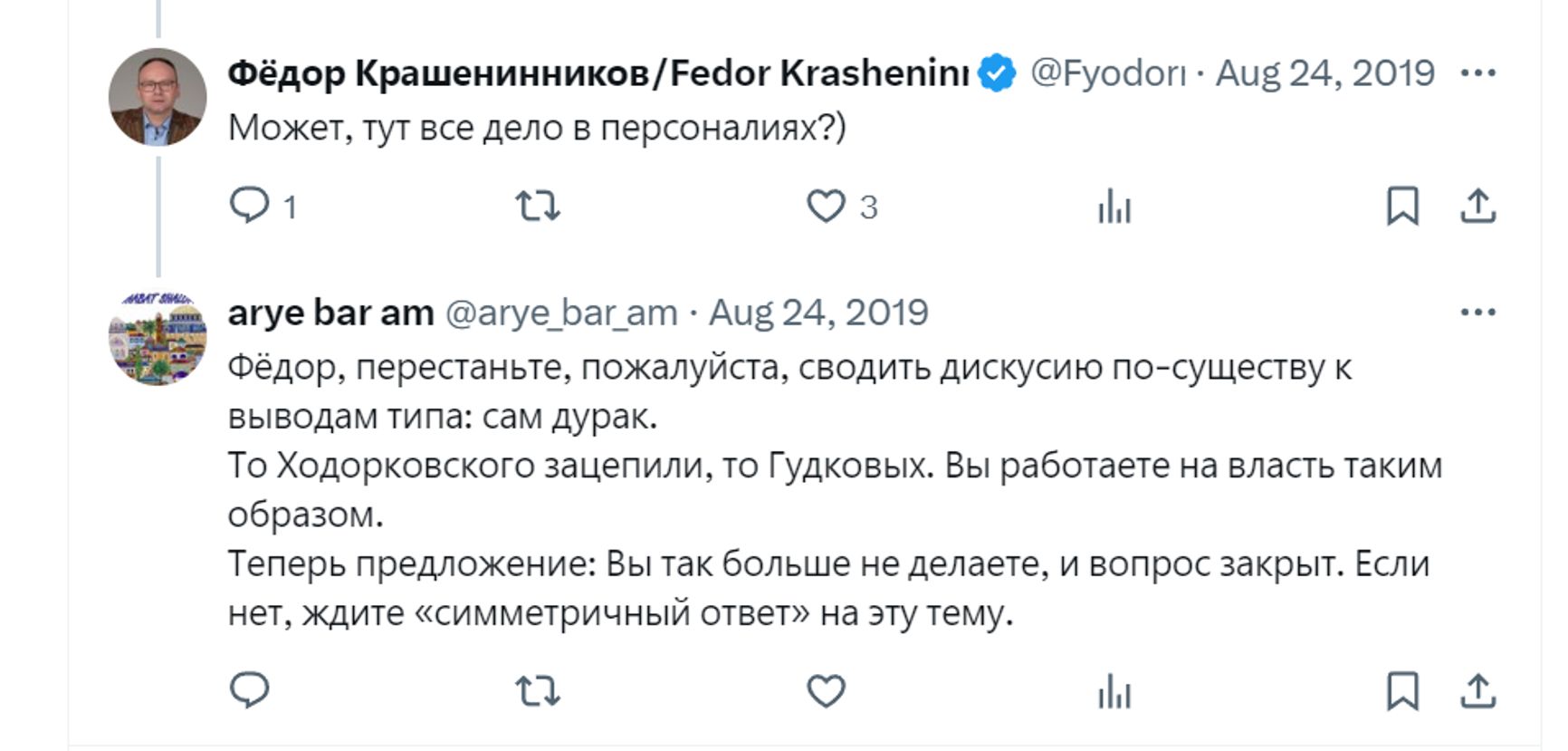 2. Как верно заметил Влад Романцов, во всех твит-ссылках, которые дает Невзлин в своих переписках, можно заметить параметр t=taRExlwtL5tmHK4OIFQ30g. Это закодированный идентификатор его устройства, который передается при шеринге. Вбив его в поиск, можно найти один из твитов от 11 сентября (именно так датировано и сообщение на скрине). Чисто технически ничто не мешало ФСБ учесть этот момент при фальсификации переписки, но такой уровень продуманности вызывает сомнения.