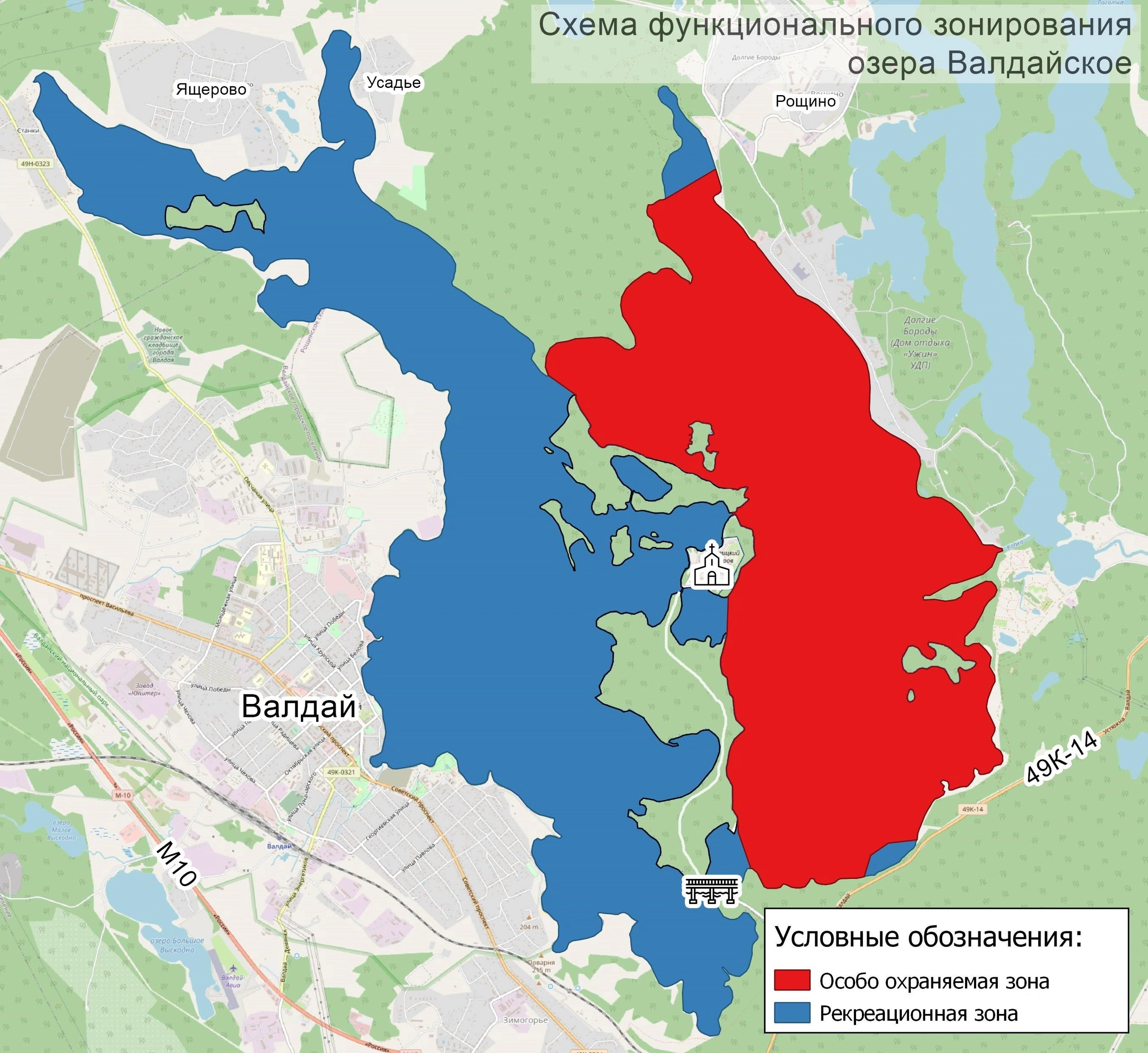 Формально доступ на территорию нацпарка запрещен из-за режима особо охраняемой природной территории. Валдайский парк площадью 36 тысяч гектар разделен на несколько охранных зон. В некоторых разрешены любительская охота и рыбалка, некоторые считаются заповедными, другие особо охраняемые. Буквально через несколько дней после того, как издание "Проект" выпустило расследование о доме Кабаевой, 3 марта 2023 года в положение о нацпарке "Валдайский" внесли изменения, ужесточившие режим охраны. Теперь границы ООПТ заходят далеко в озеро. Экскурсионных маршрутов национальный парк не предлагает, а по телефону администрация говорит, что "пребывание граждан в зоне ООПТ запрещено". Доступ к воде в районе резиденций Путина и Кабаевой закрыт якобы в связи с попытками "снизить темпы эвтрофирования" (насыщение воды таким количеством микробов, которое вызывает бурное и активное "цветение воды").