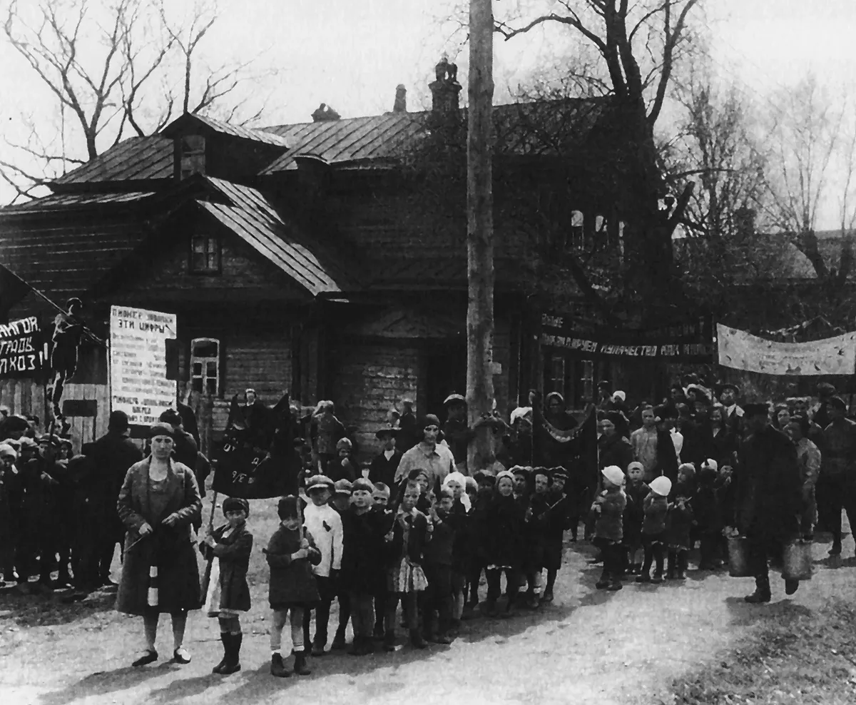 Работники Щелковского сельсовета Юхновского района Сухиничского округа в Западном крае выстроили иконы в ряд, написали на каждой, что изображенный на ней святой приговорен к смерти за сопротивление колхозному строительству и расстреляли их.
