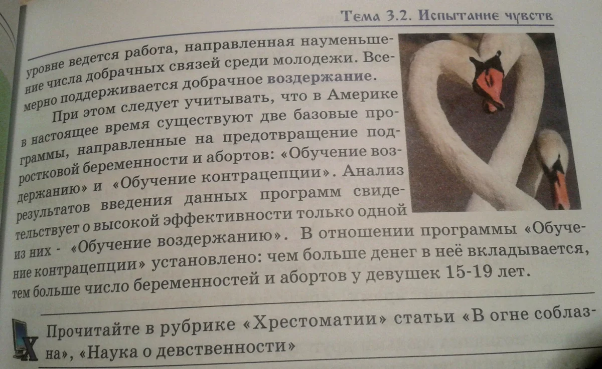 Пособие Моисеева и Крыгиной вызвало множество вопросов. Например, согласно программе Юровской школы в Костромской области, после окончания курса ученики должны были «твердо стоять в православной вере», знать историю святых семей и различать «добрачный и предбрачный» этапы отношений. Тема сексуального просвещения в учебнике практически не поднималась, а средства контрацепции авторы упоминали лишь вскользь, отмечая, что они «убивают любовь и делают ее бесплодной и мнимой». Зато в пособии есть, например, глава под названием «Наука о девственности», которая пропагандирует воздержание.