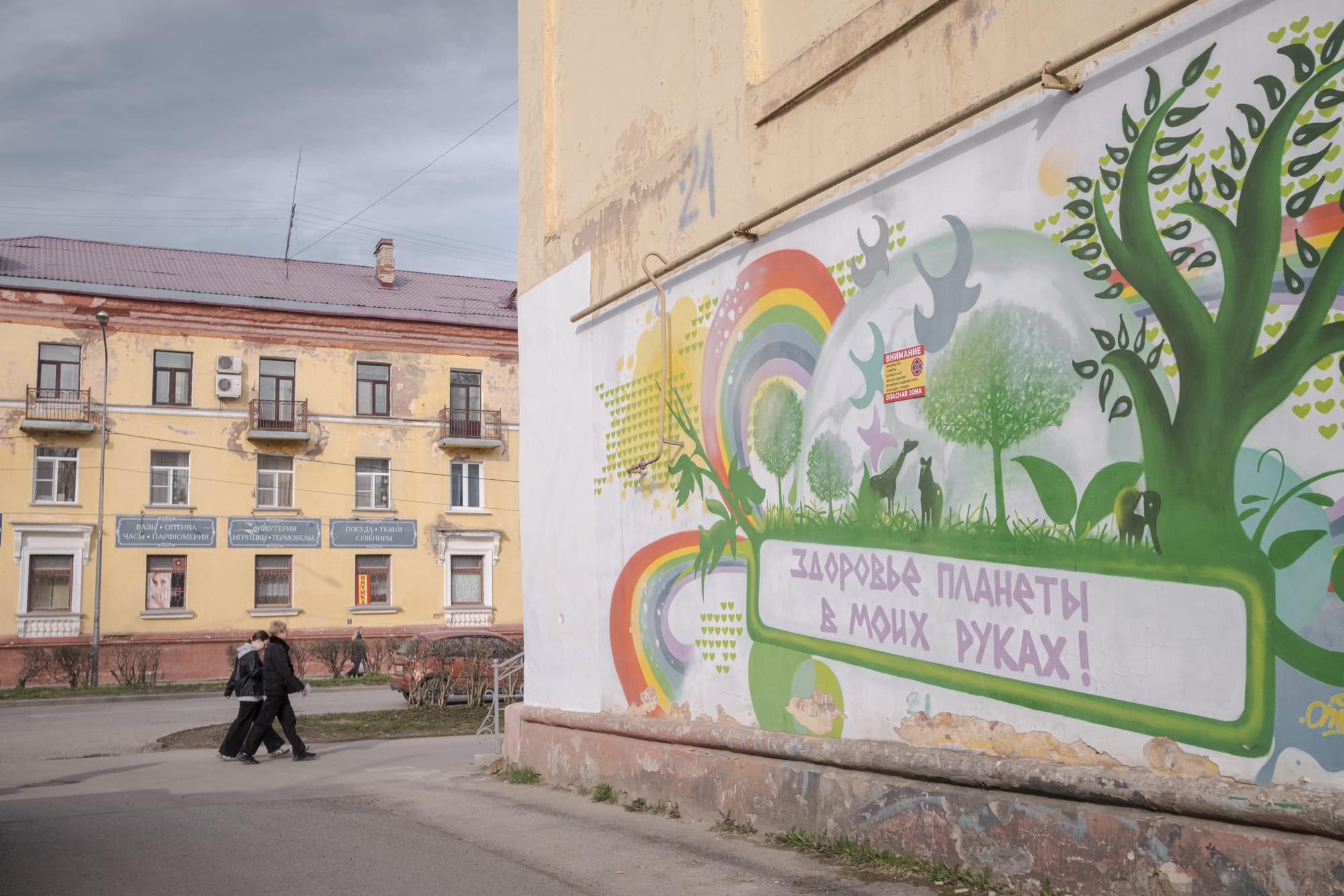 В старом центре Пикалева сохранилась уютная застройка c низкими двух- и трехэтажными домиками советских времен. Но стоит зайти во дворы, как встречаешь разруху, свойственную любому постсоветскому городу: зияющие рытвины на дорогах, потертые боковины зданий, залепленные рваными объявлениями подъезды. На домах, дверях и скамейках – граффити с рекламой наркотиков.