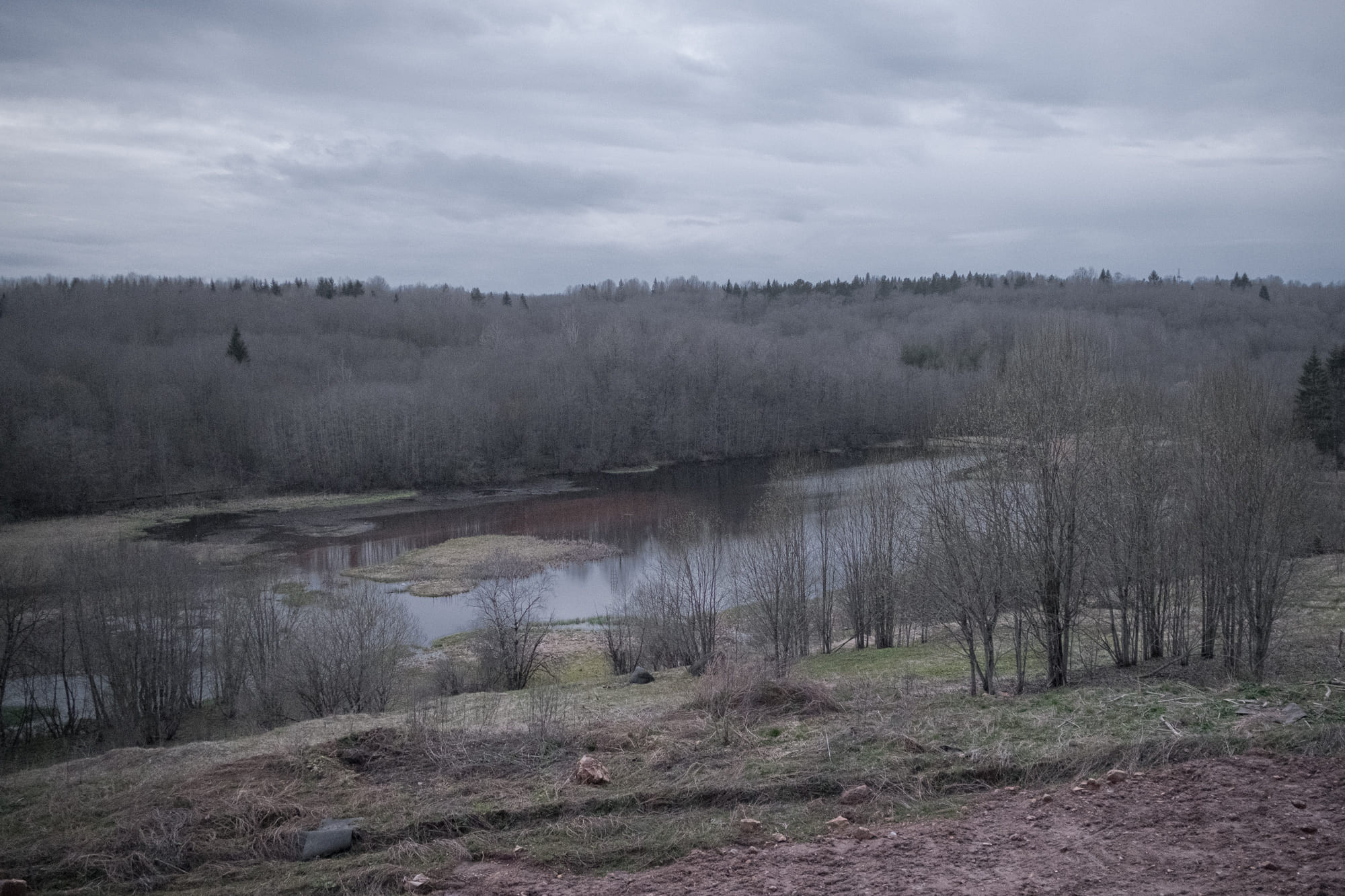 Если оторвать взгляд от мертвой земли, за деревьями виднеется Пикалевский цементный завод. Оттуда и прилетает облако цементной пыли. Любовь Николаевна смотрит на дымящиеся трубы – они торчат из-за стены прямо над могилами ее родственников. В прошлом она сама работала на этом заводе. Любовь Николаевна рассказывает, что в советское время в Пикалеве столько грязи не было.