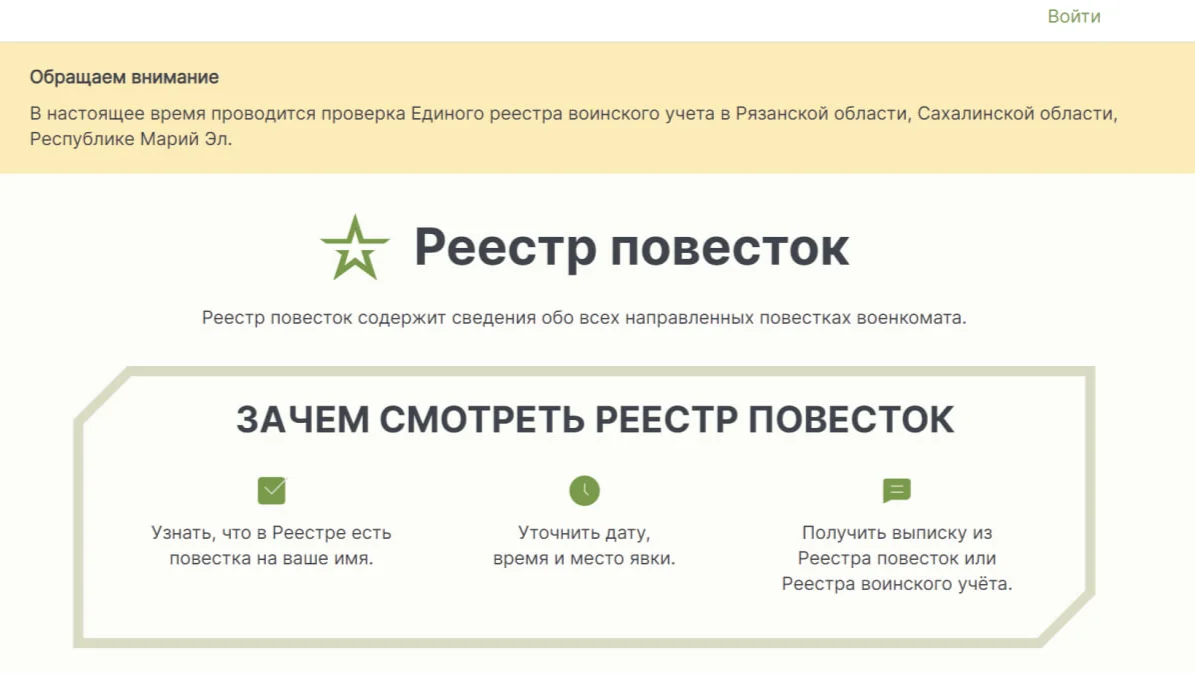 В России сегодня заработал сайт реестра электронных повесток. Сайт доступен по адрес реестрповесток.рф. Авторизоваться на нем можно через учетную запись на портале «Госуслуг».