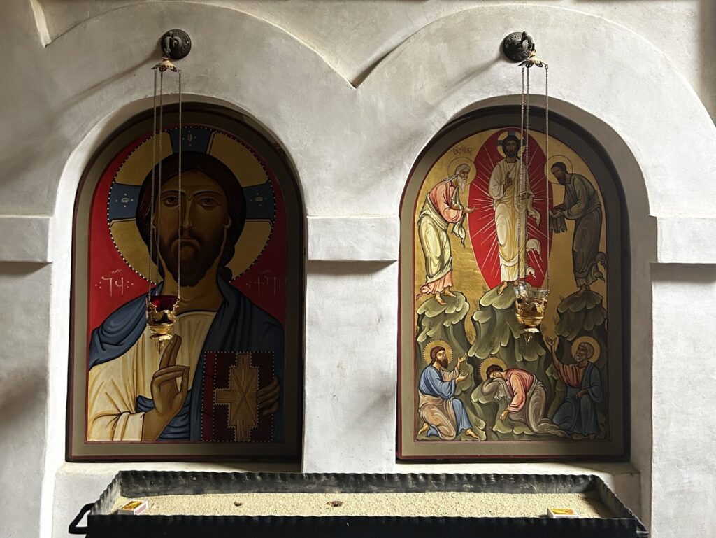 Рядом со входом в лавру можно найти лавку. В ней продают иконы, вино и холодную воду.
