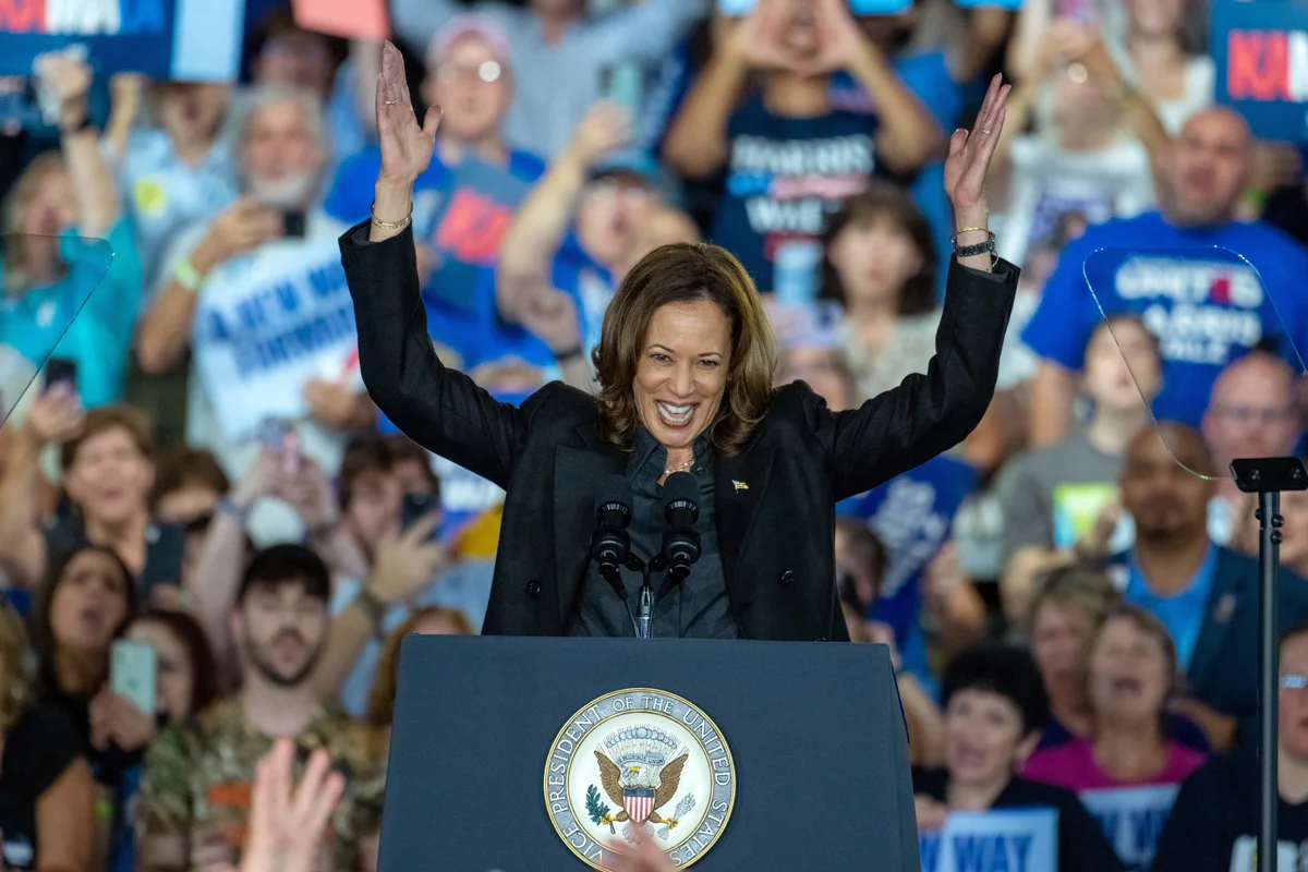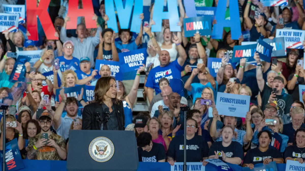 Камала Харрис выступает во время предвыборного митинга в Пенсильвании, США, 13 сентября 2024 года. Фото: David Muse / EPA-EFE