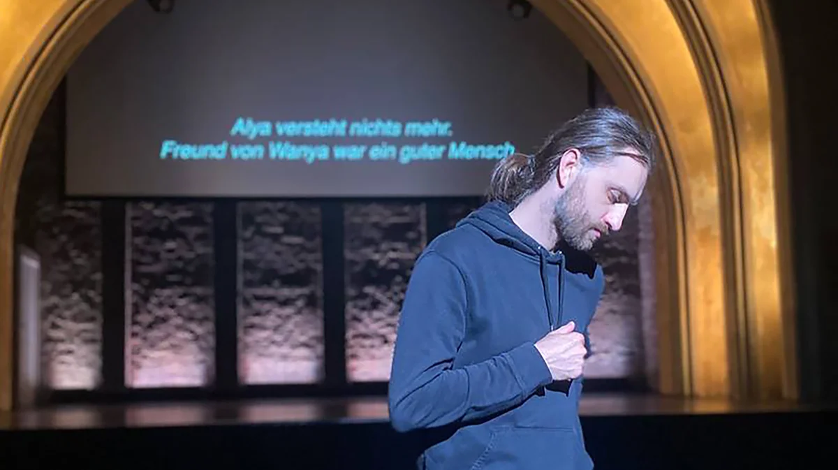 Знаменитый берлинский театр Delphi был свидетелем рассвета и заката немого кино, символом эпохи декаданса и ревущих 20-х прошлого столетия. Именно он играл варьете Moka Efti в культовом сериале «Вавилон-Берлин» Тома Тыквера. Теперь же театр стал свидетелем берлинской премьеры спектакля «Ваня жив» в постановке Иванки Польченко по одноименной пьесе Наталии Лизоркиной — арт-директора независимого фестиваля драматургии «Любимовка». Их спектакль — о России, которая онемела и потеряла голос во время ревущих 20-х нашего времени.