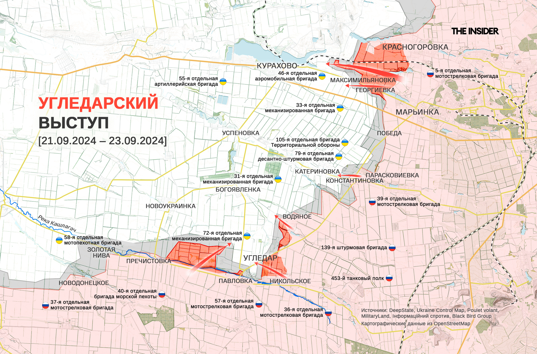 DeepState также пишет о продолжающихся попыках ВС РФ окружить Угледар. По данным аналитиков проекта, 58-я отдельная мотопехотная бригада и переброшенные подкрепления из состава войск Территориальной обороны не выдержали удар, и теперь российские военные продвигаются к северу от Пречистовки, угрожая перерезать логистику Угледара.