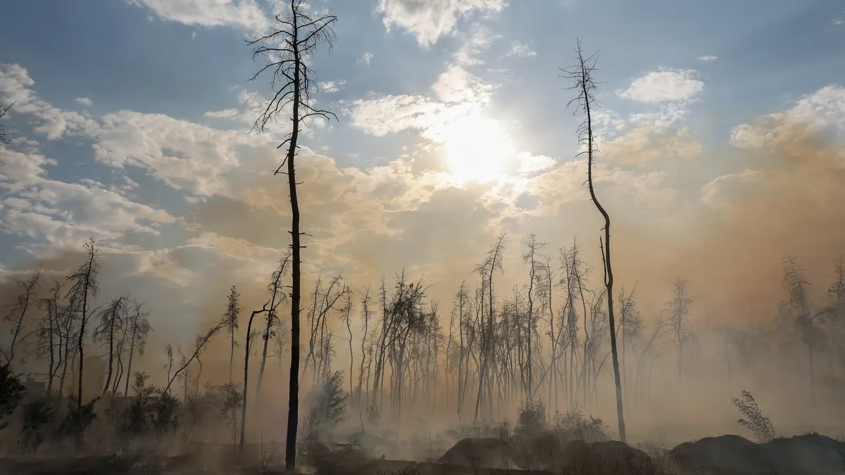Smoke rises from a wooded area of Ukraine’s second city Kharkiv following a Russian glide bomb attack, 17 September 2024. Photo: EPA-EFE / SERGEY KOZLOV