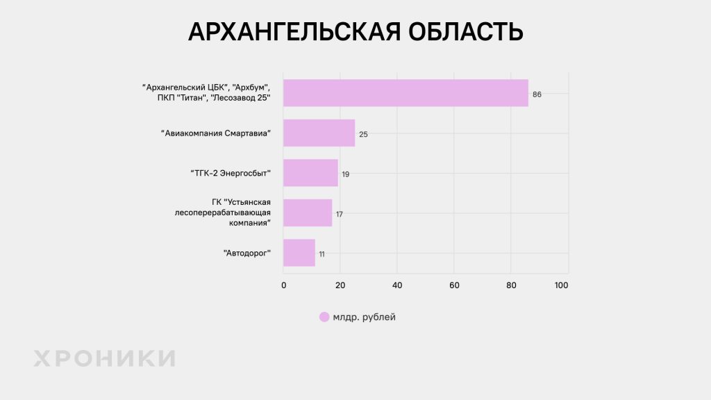 На последнем месте — «Архангельский траловый флот» (10 млрд). Он принадлежит компании «Вирма». «Хроники.Медиа» писали, что это компания сенатора Игоря Зубарева, который в обход санкций продолжает торговать с Европой.