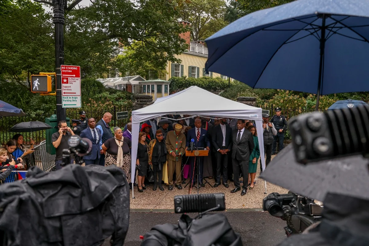 Эрик Адамс во время пресс-конференции возле своей резиденции-особняка «Грейси». Фото: AP / TASS