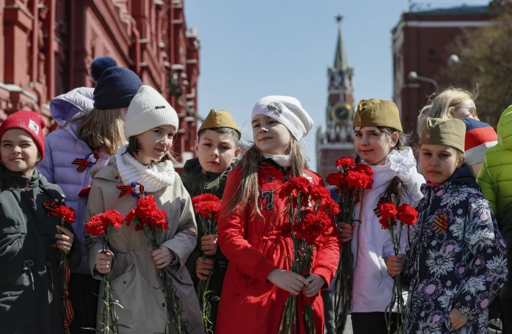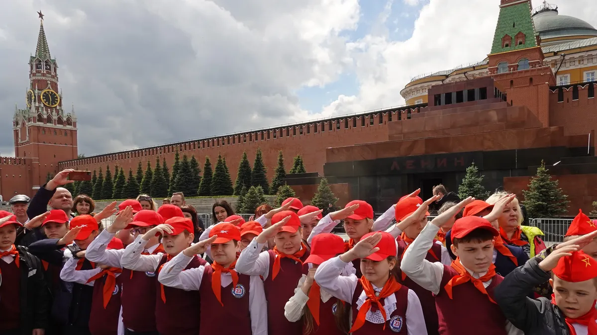 Members of the Russian Young Pioneers attend a pioneer induction ceremony in the Red Square in Moscow, May 2023. Photo: EPA-EFE/MAXIM SHIPENKOV
