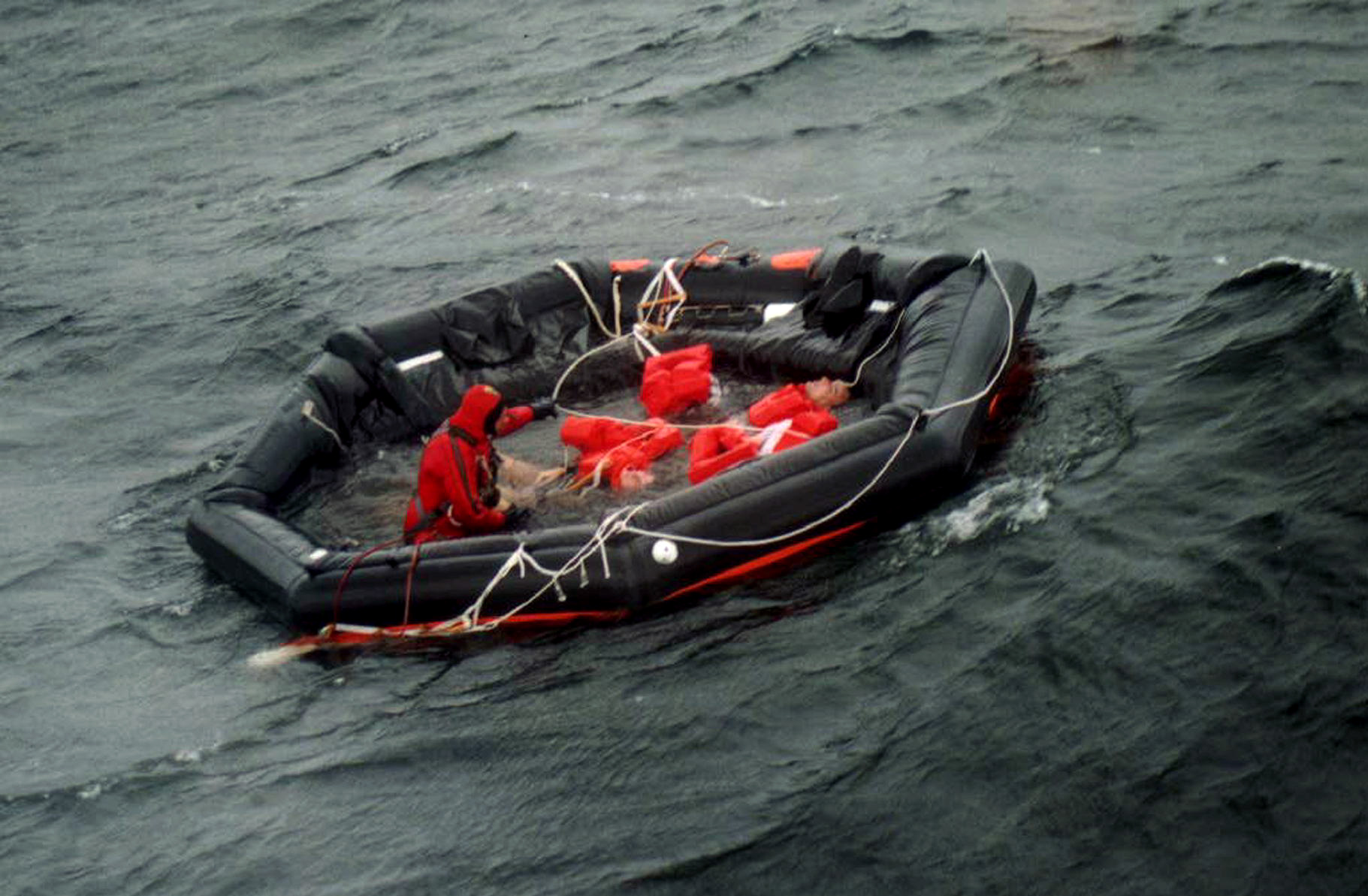 Интс пытался разговаривать с другими спасшимися. Но многие были в шоке, поэтому предпочитали отмалчиваться. Удалось найти контакт с молодым скандинавом, вместе парни вычерпывали воду из плота и запускали ракеты из спасательного комплекта. Они первыми увидели спасательные вертолеты, которые прилетели к месту катастрофы. Но те не замечали плот, который швыряли волны.