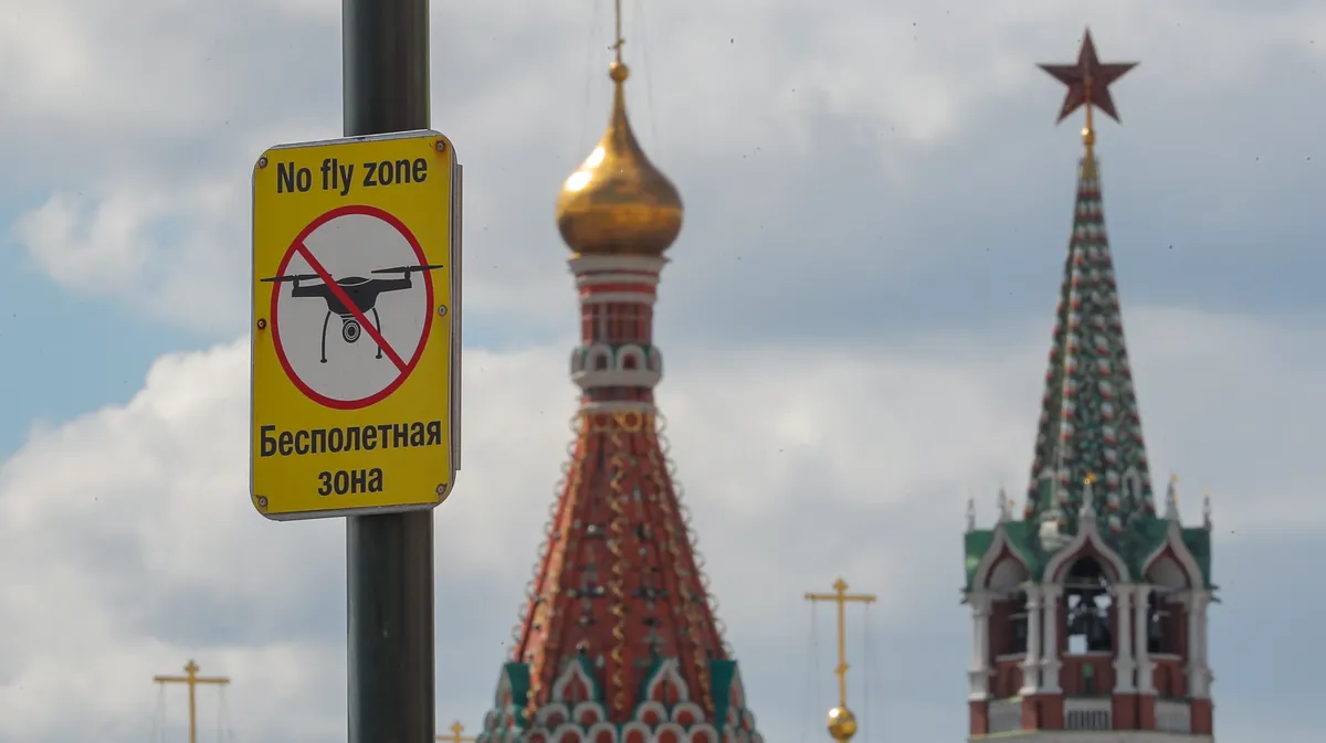 A sign prohibits drone use near Moscow’s Kremlin, 4 May 2023. Photo: EPA-EFE / MAXIM SHIPENKOV