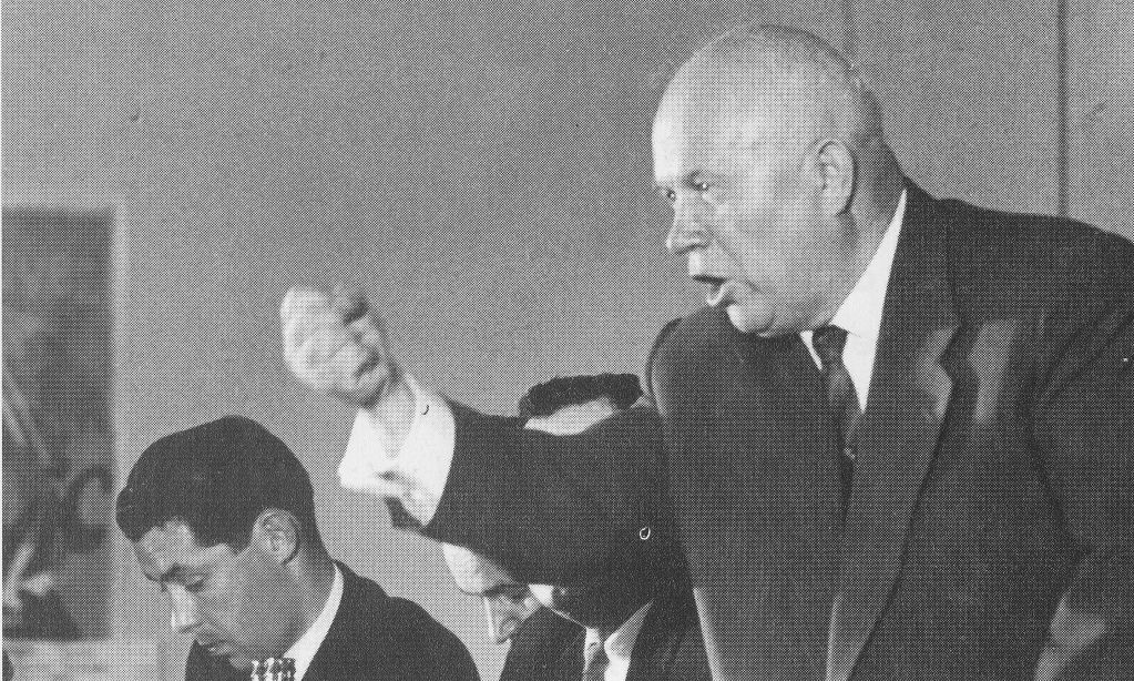 Мумин Шакиров: Там же в зале ООН произошла знаменитая сцена с ботинком, когда Хрущев в порыве гнева стучал им не по трибуне, как писала об этом пресса, а по своему столику в зале. Вернувшись в Москву из Нью-Йорка, Хрущев начал угрожать миру ядерным оружием. Отношения между США и Советским Союзом ухудшались с каждым днем.