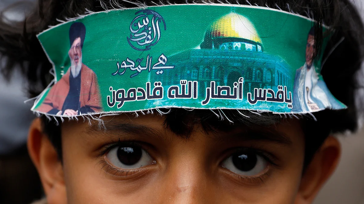 Йеменский мальчик носит повязку на голове с надписью "О Аль-Кудс, Ансар Аллах [хуситы] идут" во время митинга протеста против израильских ударов по сектору Газа в Сане, Йемен, 14 мая 2023 года. Фото: Yahya Arhab / EPA-EFE