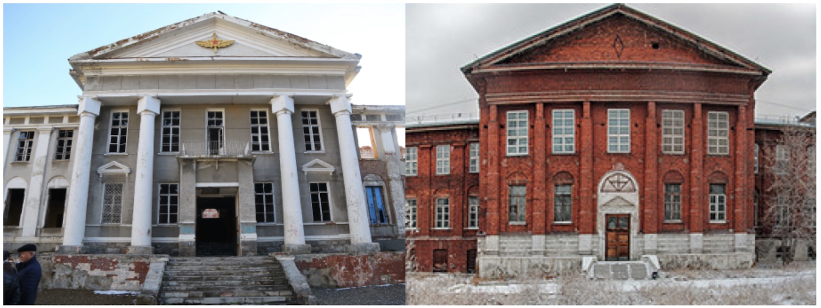 На спутниковых снимках 2021 года, сделанных до того, как один из корпусов отреставрировали, видно, насколько они похожи – не только строением, но и актуальным на тот момент состоянием. Оба здания, построенные в одно время в первой половине 20-го века, так же синхронно были доведены до состояния руин.