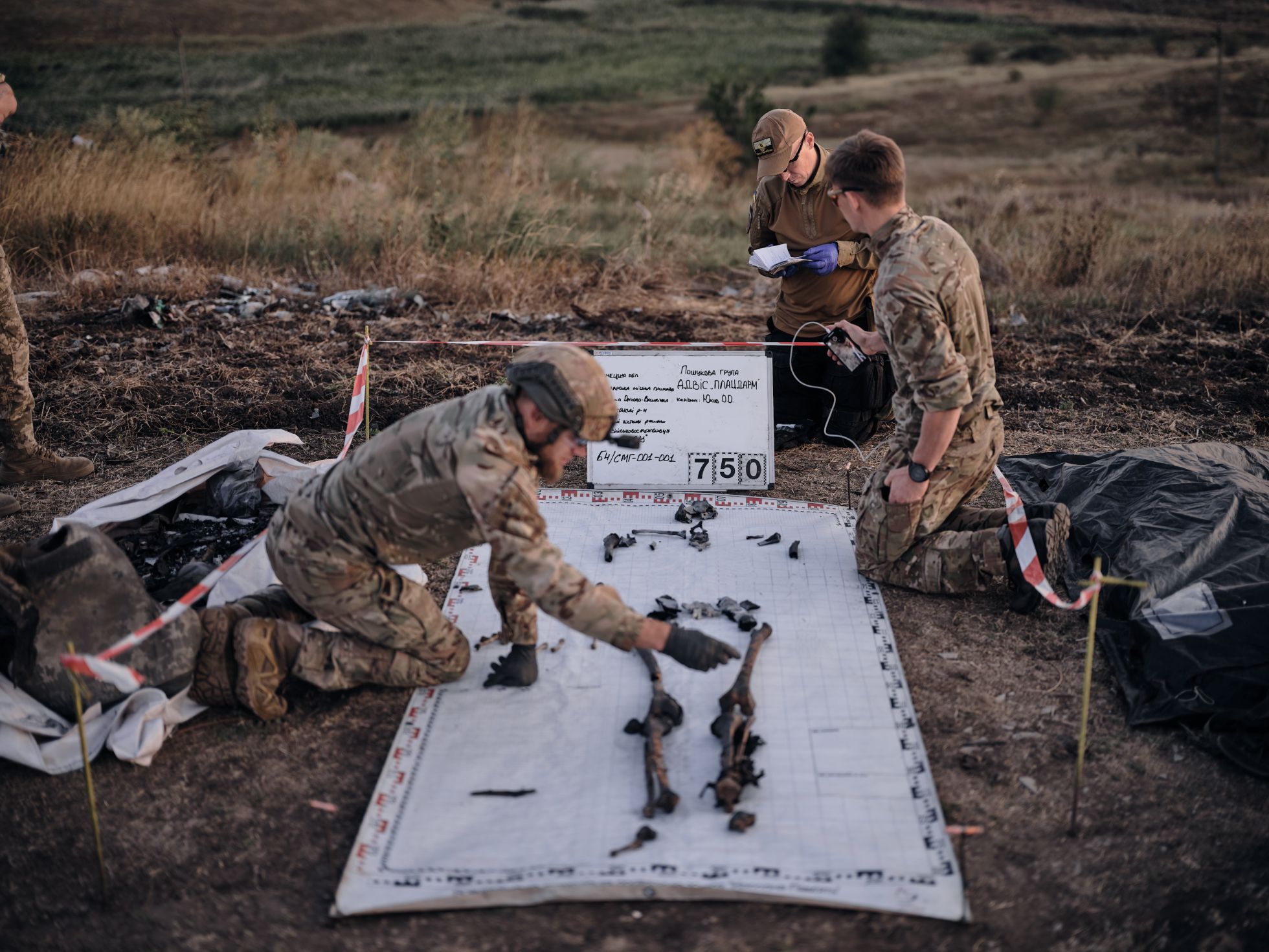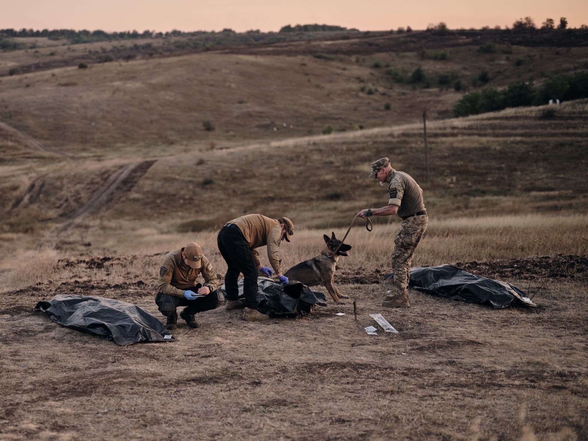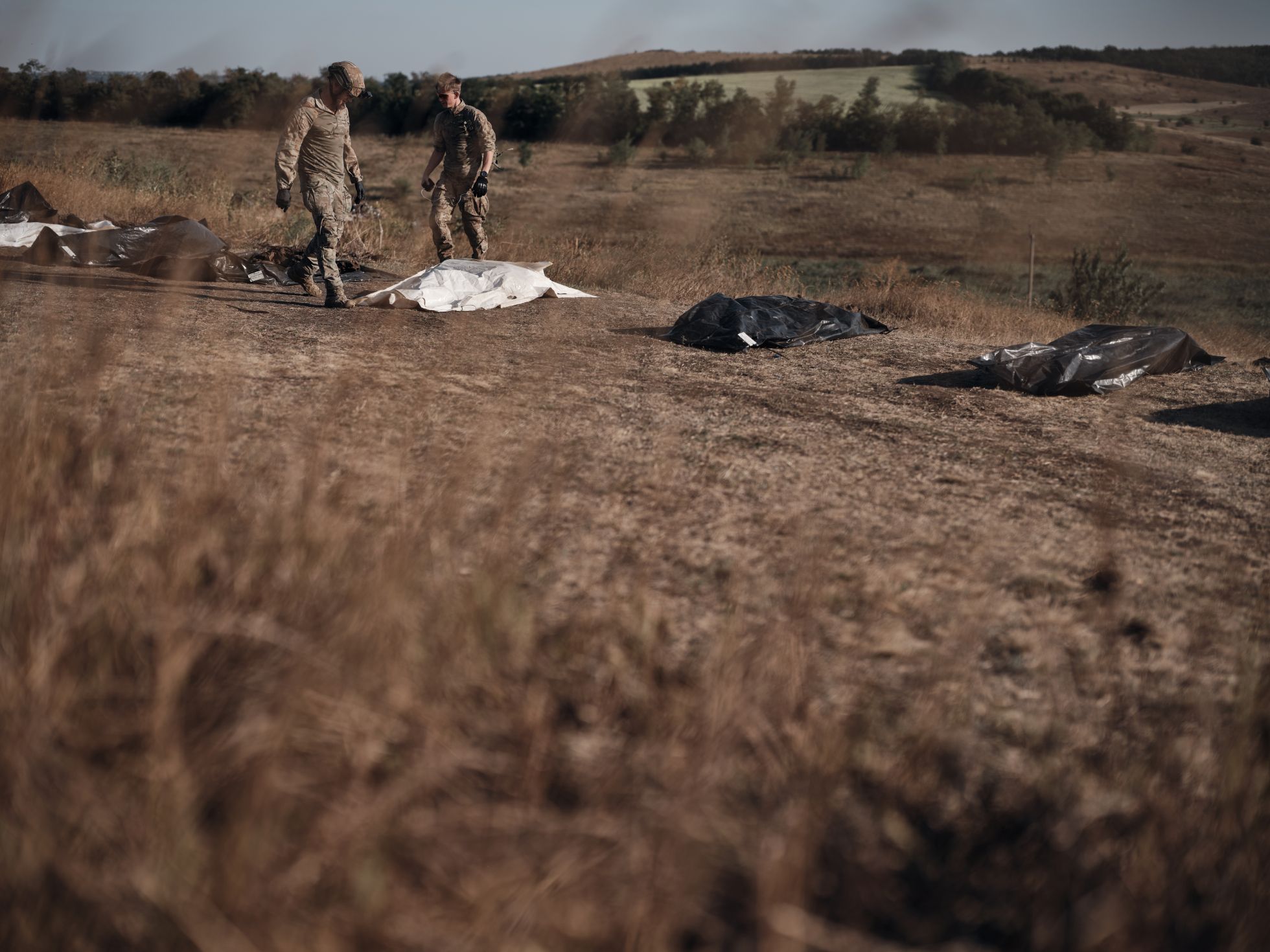 Украинская волонтерская группа «Плацдарм» с 2014 года занимается поисками останков погибших, а также сбором документов и улик, которые могут помочь опознать их. Волонтеры ищут как погибших украинских военных, так и российских солдат. «Мы находим тела российских солдат, местных жителей, которые были замучены и убиты, украинских военных, погибших, защищая независимость Украины. Мы ежедневно видим смерть», — говорил глава «Плацдарма» Алексей Юков в интервью «Громадське» в начале 2024 года. Останки украинцев после опознания отдают родным для захоронения. Останки россиян впоследствии передают российской стороне в обмен на тела украинских солдат. «Медуза» публикует фотографии работы поисковой группы под Славянском в Донецкой области, сделанные 19 сентября.