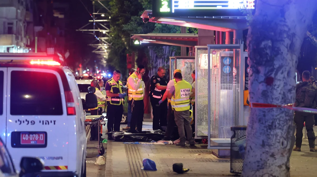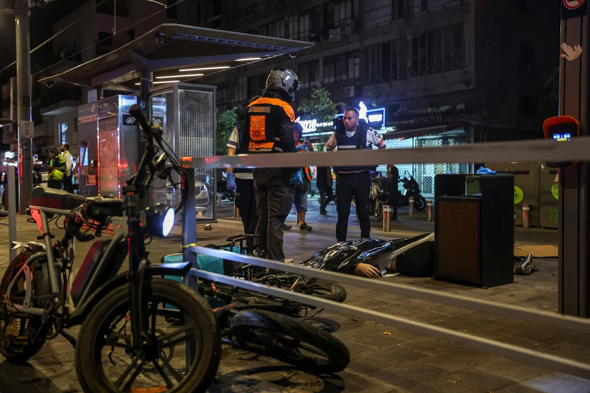 Cудмедэксперты осматривают место перестрелки в Тель-Авиве, Израиль, 1 октября 2024 года. Фото: Abir Sultan / EPA-EFE
