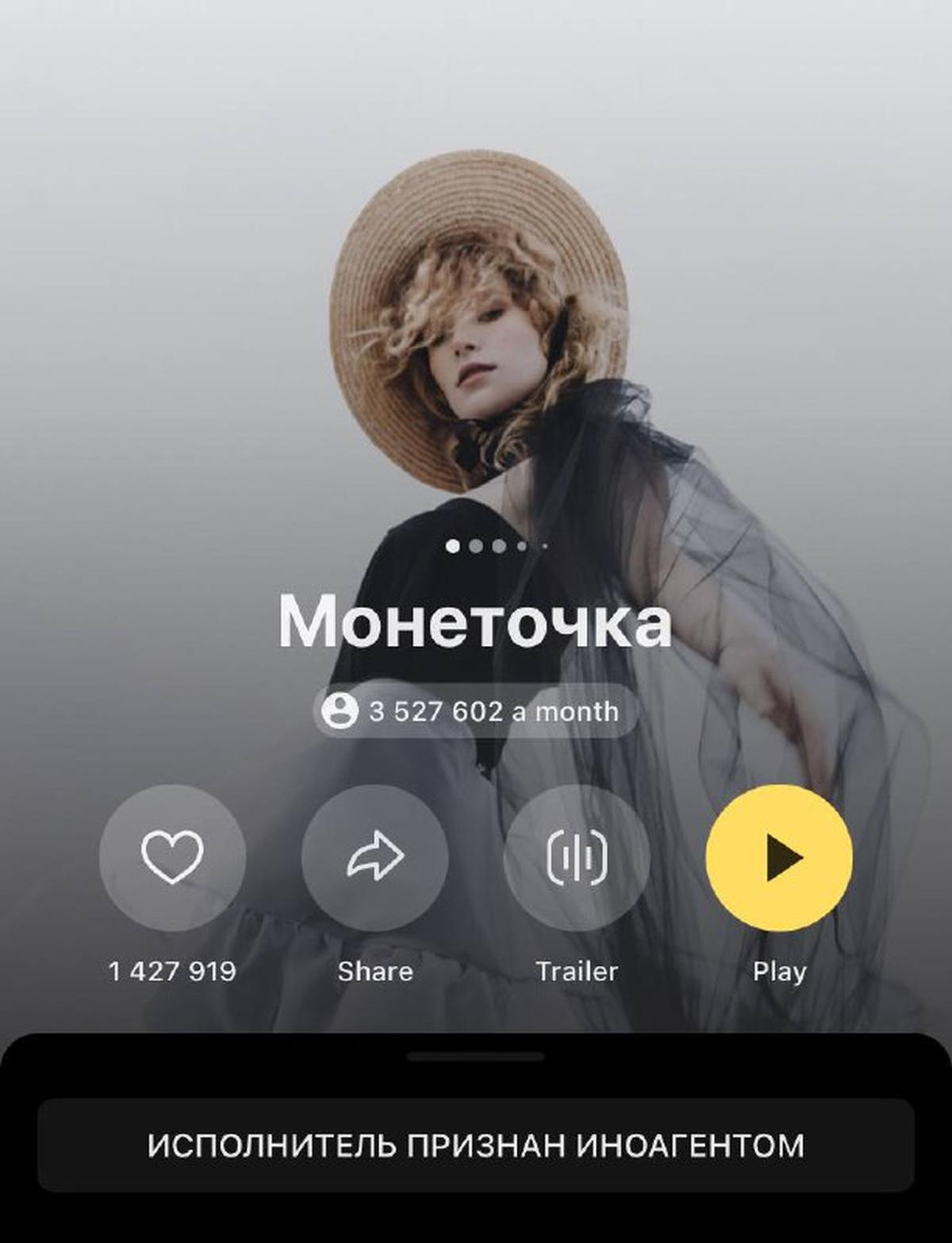 «Важные истории» обратили внимание, что в приложении «Яндекс Музыки» в профилях артистов, признанных «иноагентами», появилась соответствующая маркировка.