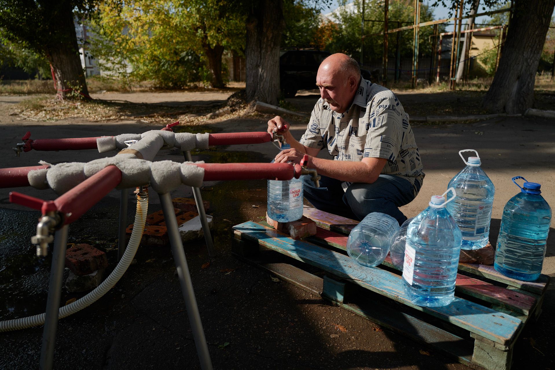 Pierre Crom / Getty Images Горящие после очередного артобстрела трава и кустарник у железнодорожных путей возле Покровска. 3 октября 2024 годаMaciek Musialek / Anadolu / Getty Images Житель Покровска, оставшийся в городе, к которому приближаются российские войска, пытается потушить одно из загоревшихся после обстрела зданий. Хозяин дома в этот момент заблокирован внутри. 2 октября 2024 годаGenya Savilov / AFP / Scanpix / LETA Детская площадка и разрушенный жилой дом в Покровске. До начала полномасштабной войны в городе жили около 60 тысяч человек, по состоянию на середину сентября в Покровске оставались 16 тысяч жителей. Власти пытаются эвакуировать всех жителей в менее опасные места. 24 сентября 2024 годаGenya Savilov / AFP / Scanpix / LETA Несмотря на призывы эвакуироваться, постоянные обстрелы и приближающиеся российские войска некоторые жители города решили, по разным причинам, остаться. В Покровске даже продолжают работать салоны красоты. 21 сентября 2024 годаPierre Crom / Getty Images Житель Покровска пополняет запасы питьевой воды. Из-за обстрелов и ракетных ударов в Покровске нарушено централизованное водоснабжение. 3 октября 2024 годаVincenzo Circosta / Anadolu / Getty Images Военнослужащий из 15-й бригады оперативного назначения Нацгвардии (также известна как «Кара-Даг») — одного из украинских подразделений, обороняющего Покровск. 28 сентября 2024 годаPierre Crom / Getty Images Волонтеры строят укрепления для украинских военных под Покровском. Помочь обороняющим город приехали госслужащие из Закарпатской области. 30 сентября 2024 годаPierre Crom / Getty Images «Зубы дракона» (они должны помешать продвижению техники противника) на подступах к Покровску. Пока их не установили.30 сентября 2024 года