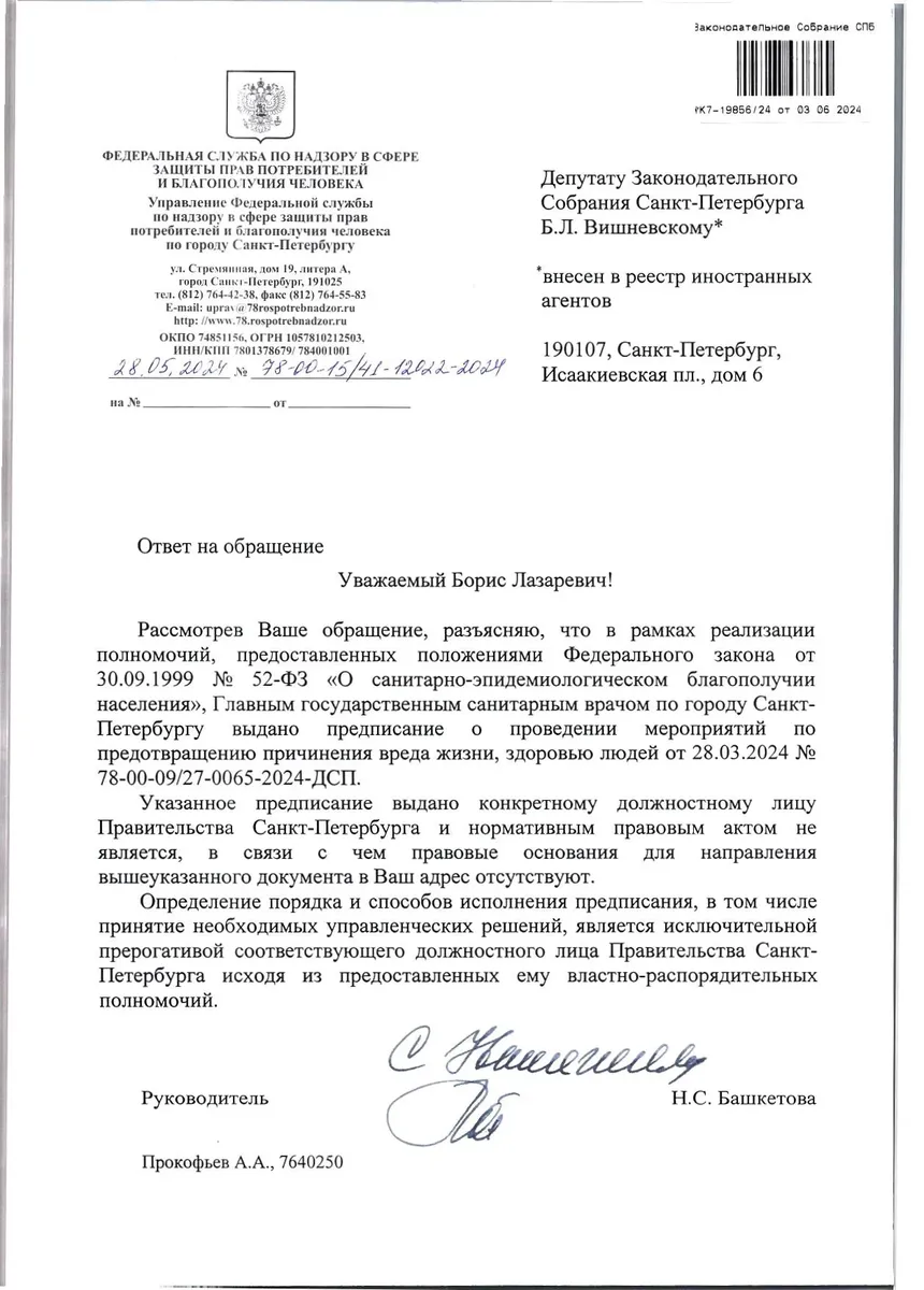Желая исправить эту печальную ситуацию, фракция «Яблоко» в питерском ЗакСе неоднократно обращалась к губернатору Александру Беглову с предложением отменить уже ни на чем не основанный запрет — и получала неизменное: «Роспотребнадзор не велит». Смольный сообщает, что может отменить запрет только по представлению главного санитарного врача Петербурга — она же начальник управления Роспотребнадзора (РПН), а из РПН нам отвечают, что налицо эпидемическая опасность.
