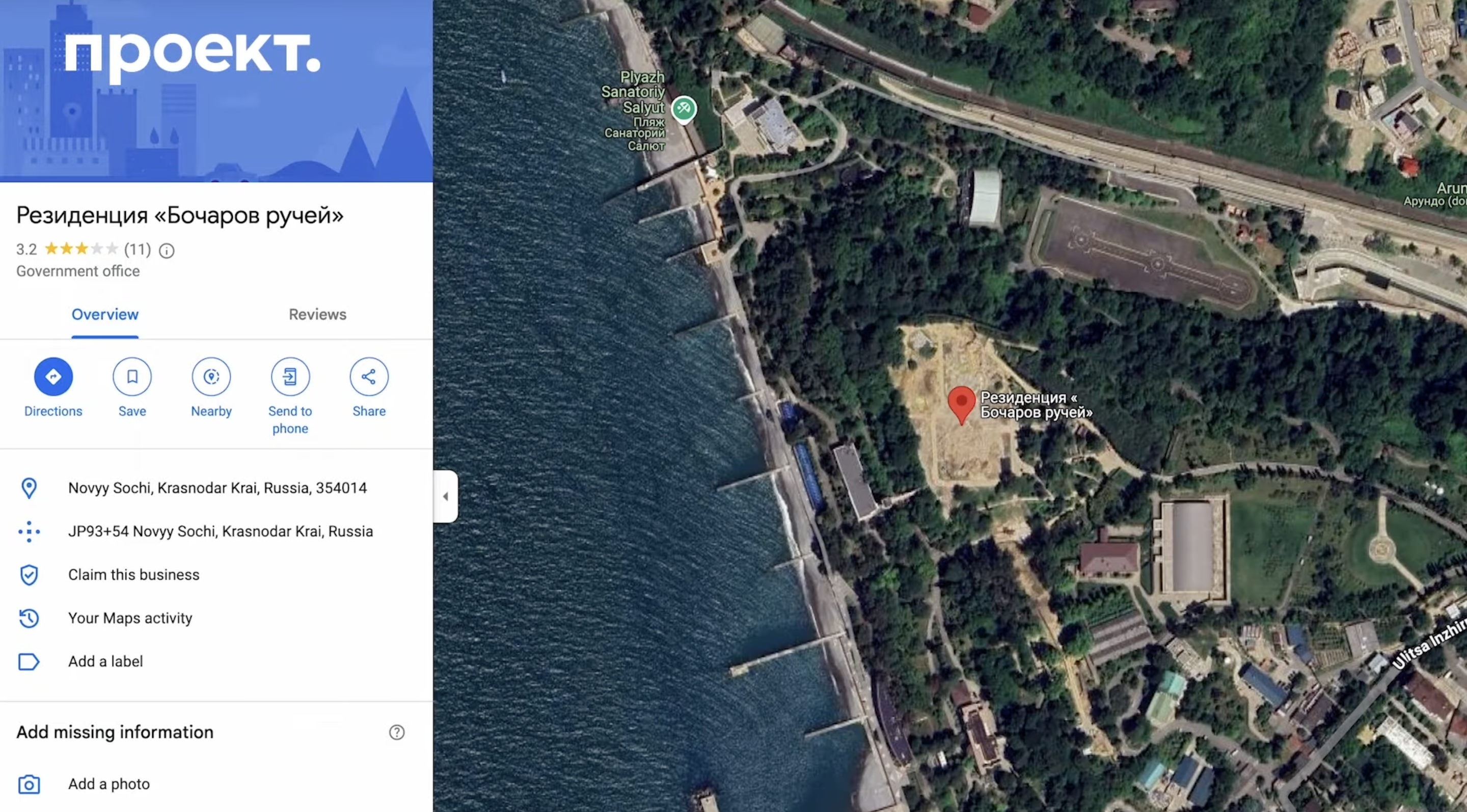 Основное здание резиденции Владимира Путина «Бочаров Ручей» в Сочи снесено, сейчас на его месте котлован и работает строительная техника, рассказал «Проект» в новом видео.