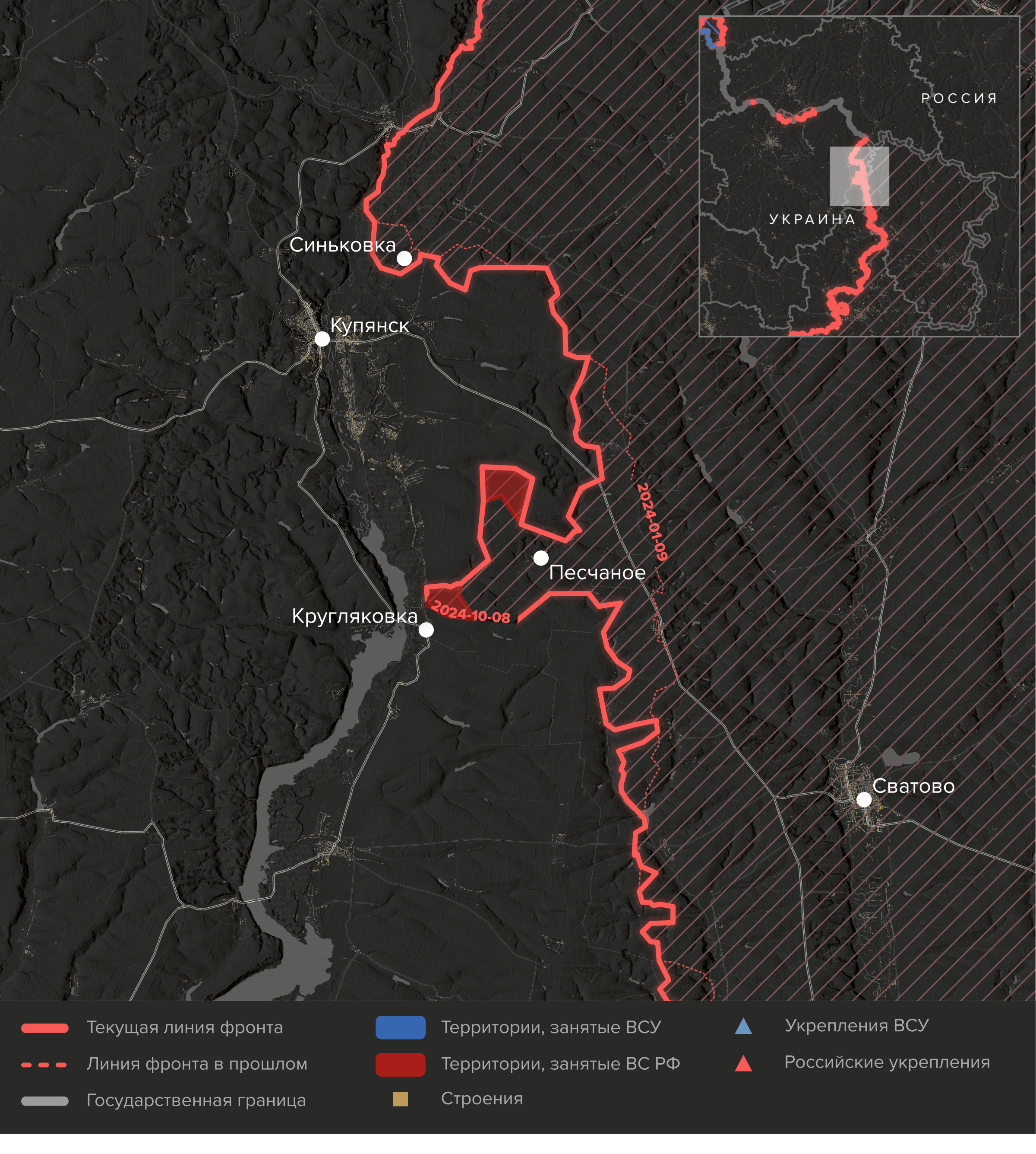 - Российские войска вышли на окраины Кругляковки и Колесниковки — сел, которые находятся на берегу реки Оскол. Выход к Осколу — главная цель российского наступления в районе города Купянска, которое продолжается больше года.