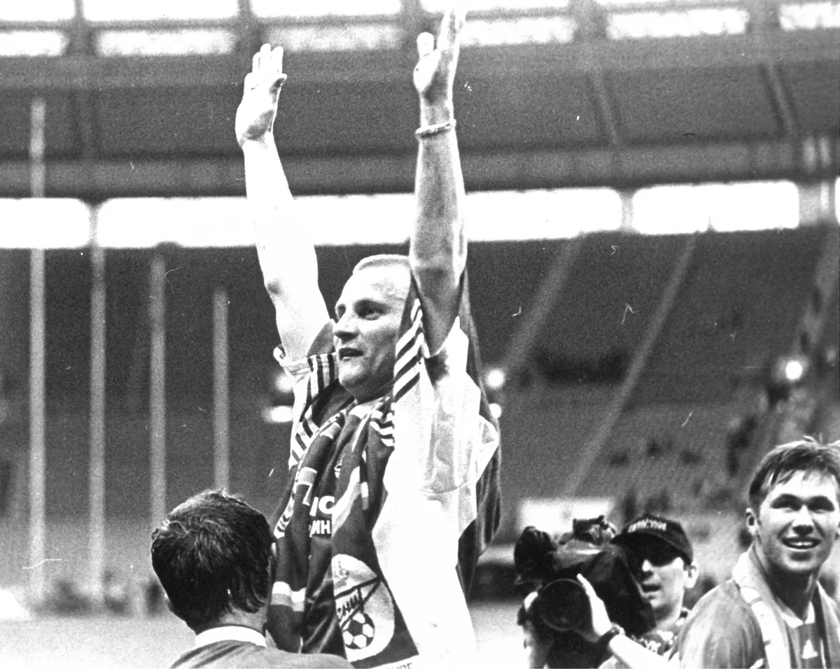 А тогда футбол являлся единственной радостью для людей, которых сбивали с ног путчи, безработица, теракты и дальнейшая неопределенность. Вы не забыли, что выдал комментатор Владимир Маслаченко, когда «Спартак» в 1998-м одолел в Лиге чемпионов в «Лужниках» мадридский «Реал» Гуса Хиддинка? Он произнес следующую фразу: «Единственное, что пока еще не девальвируется — футбол… Ликуйте и радуйтесь жизни в это наше бездарное время!» И это была чистая во всех смыслах правда.