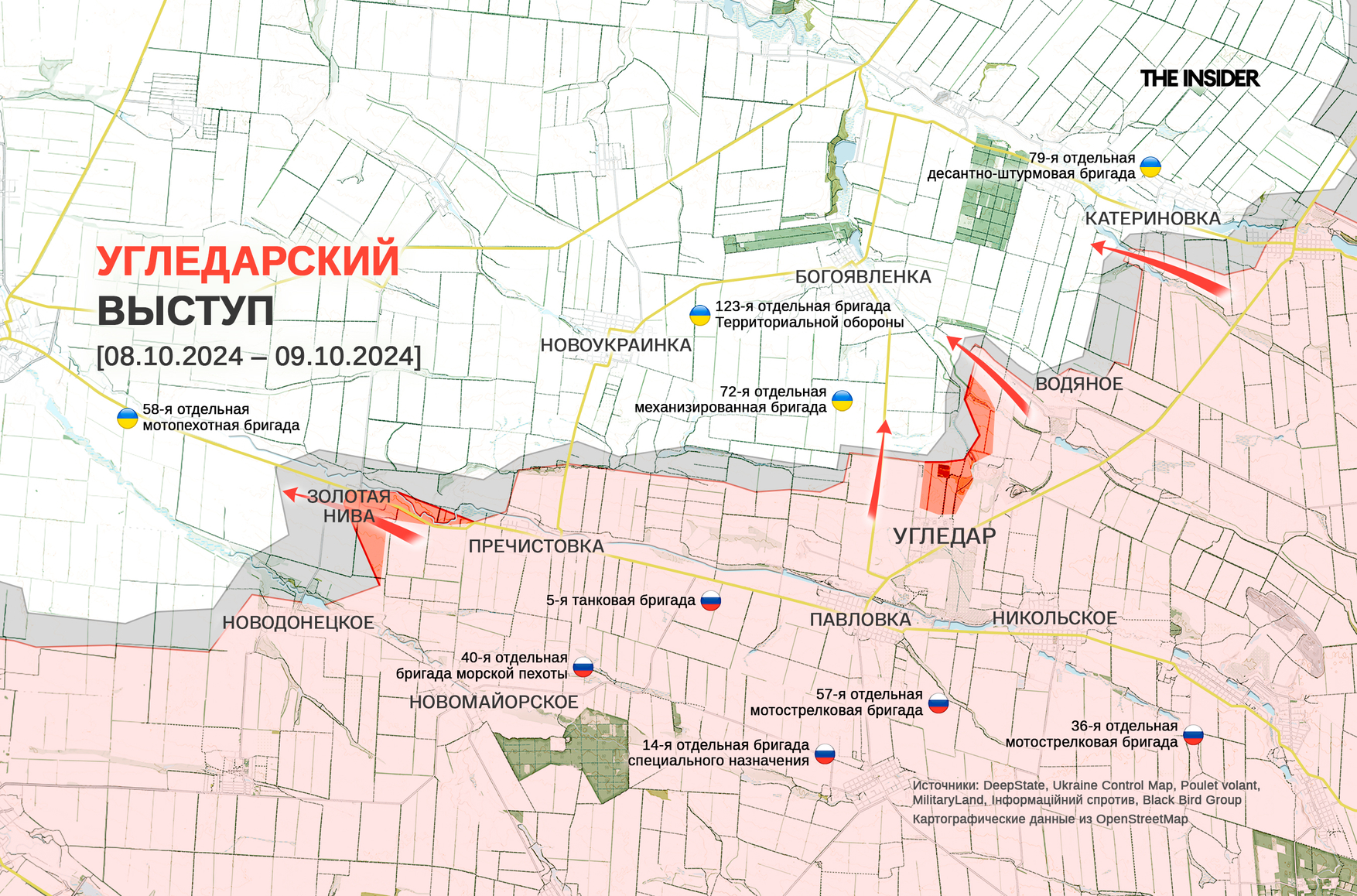 DeepState пишет о продвижении ВС РФ около Золотой Нивы к западу от Угледара, рядом с самим Угледаром, а также в Цукурино на покровском направлении и в Торецке (до 2016 года — Дзержинск).