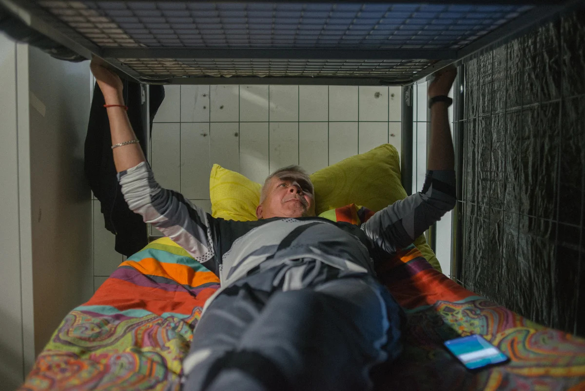 Люди живут здесь в металлических клетках, покрытых черным полиэтиленом, — слышимость стопроцентная. В отсеке Виталия две двухэтажные койки, свободная кровать завалена вещами: